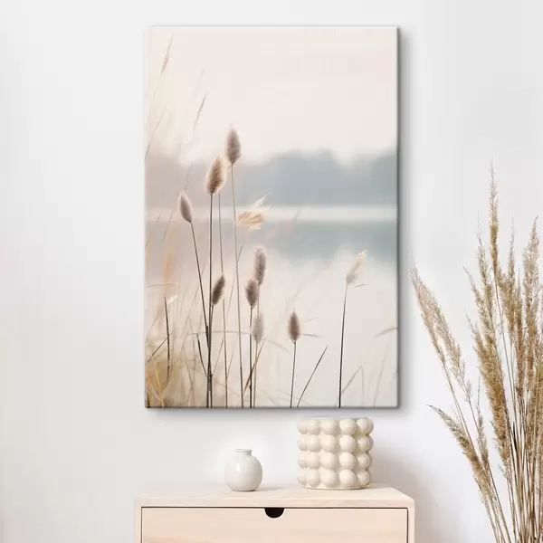 Картина М'які очерети на березі туманного озера, пастельні бежеві тони Арт. s46504