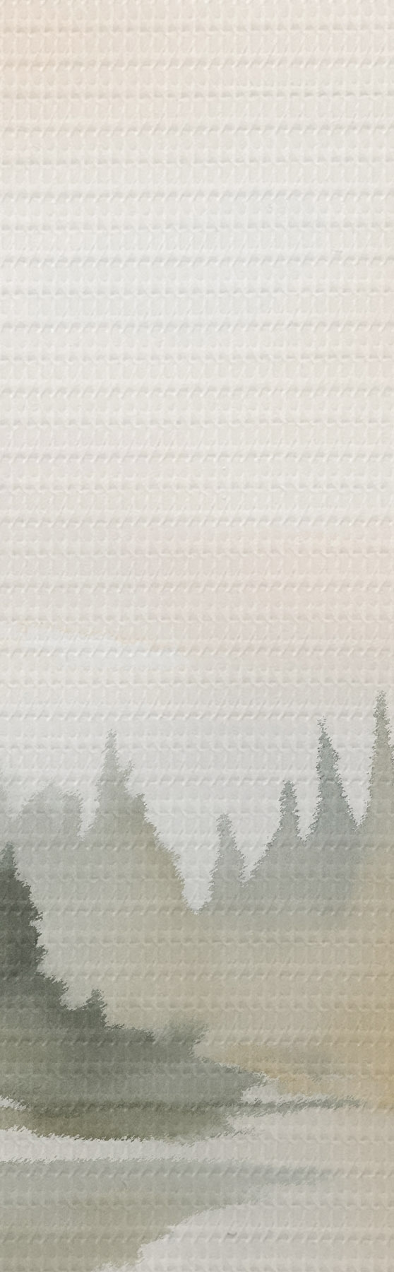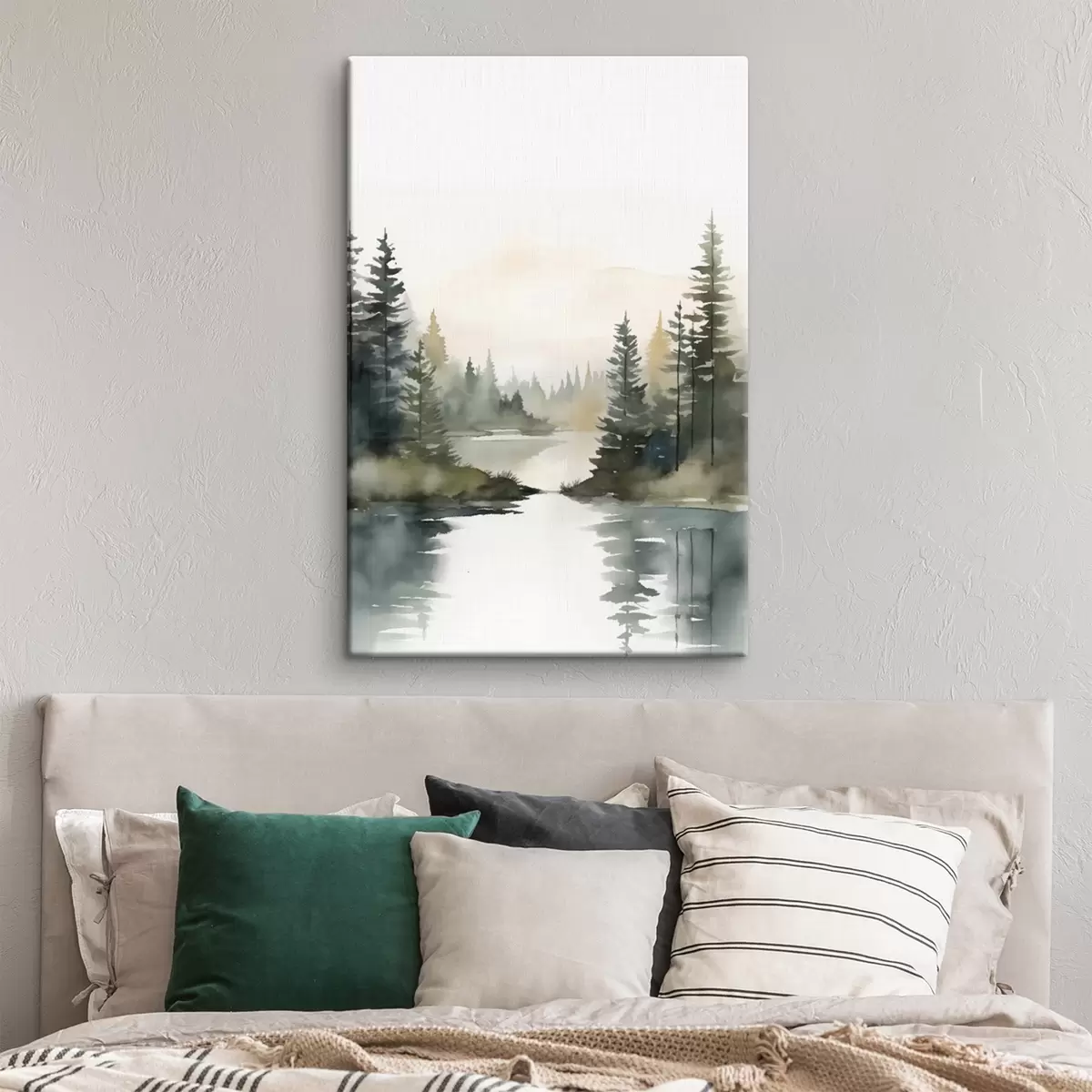 Картина Туманний хвойний ліс над спокійною річкою, акварельний стиль Арт. s46507