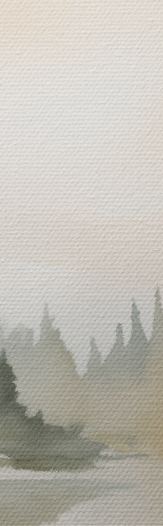 Картина Туманний хвойний ліс над спокійною річкою, акварельний стиль s46507