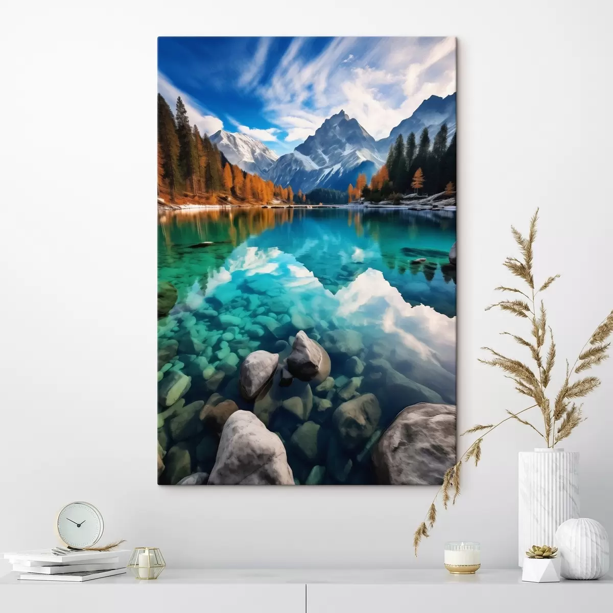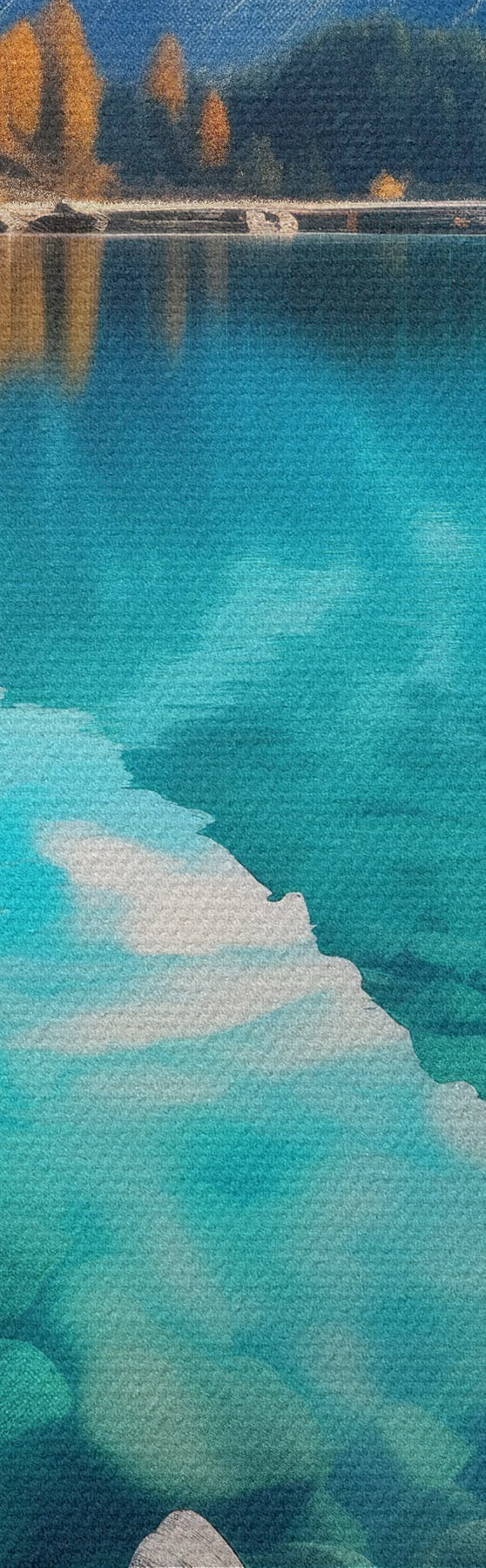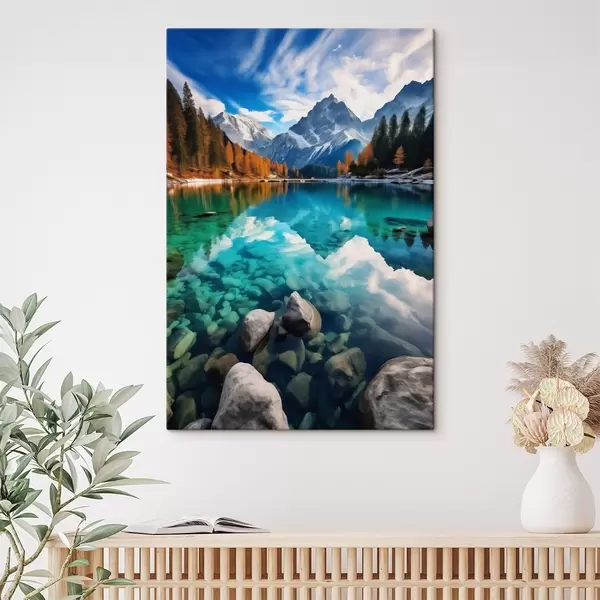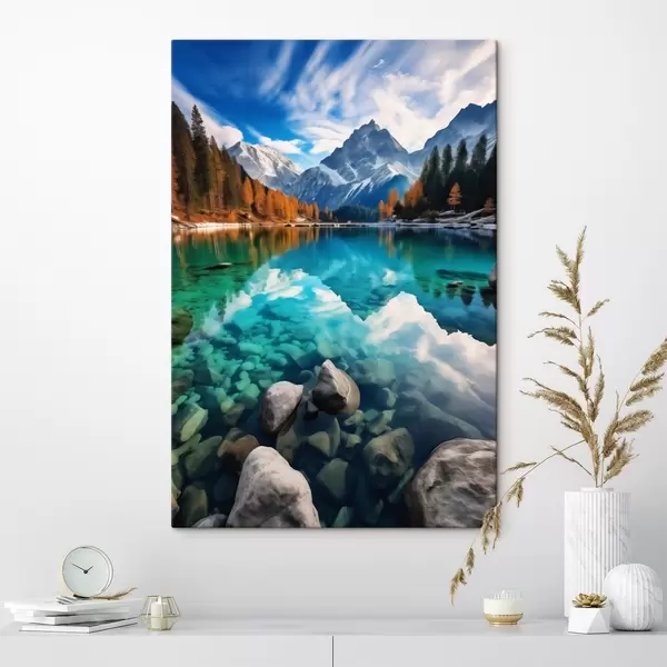 Картина Гірське озеро з бірюзовою водою та осінніми модринами Арт. s46517