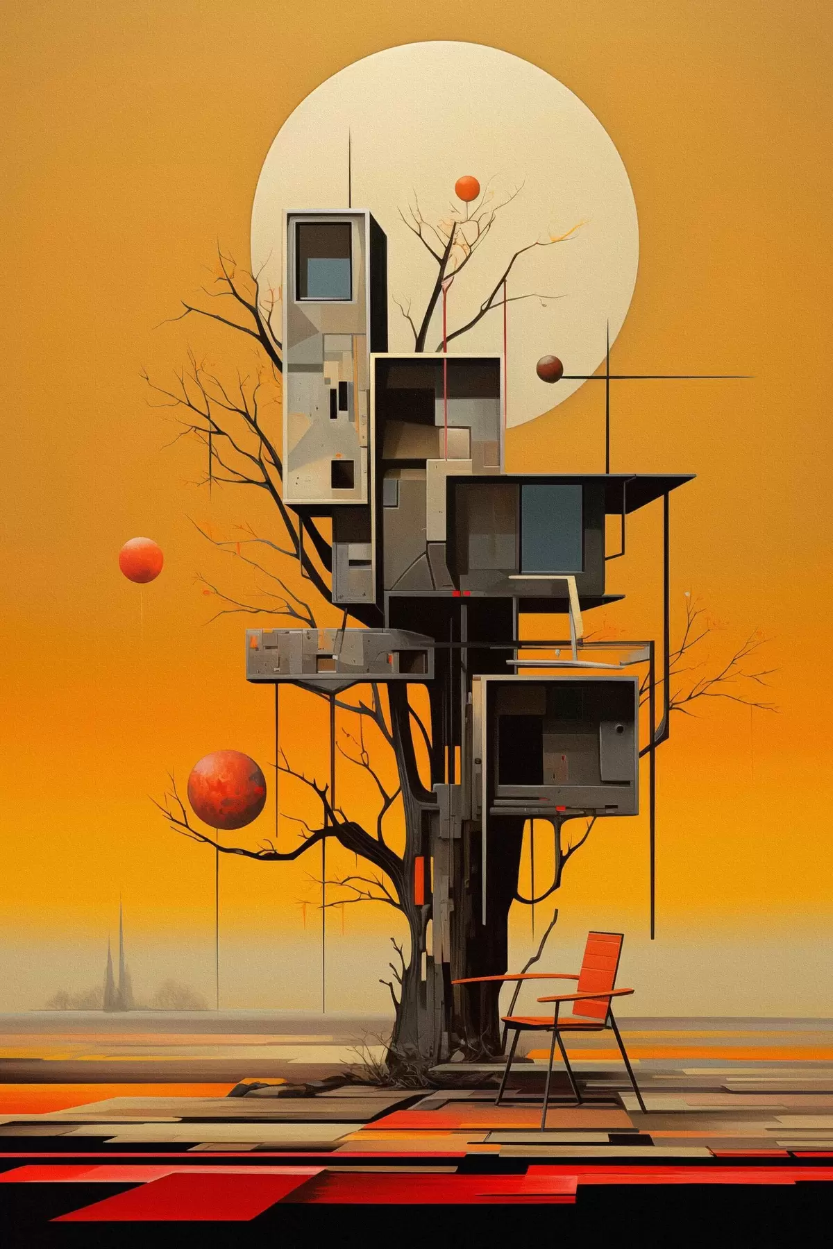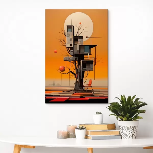 Картина Сюрреалістичний будиночок на дереві на помаранчевому тлі Арт. s46526
