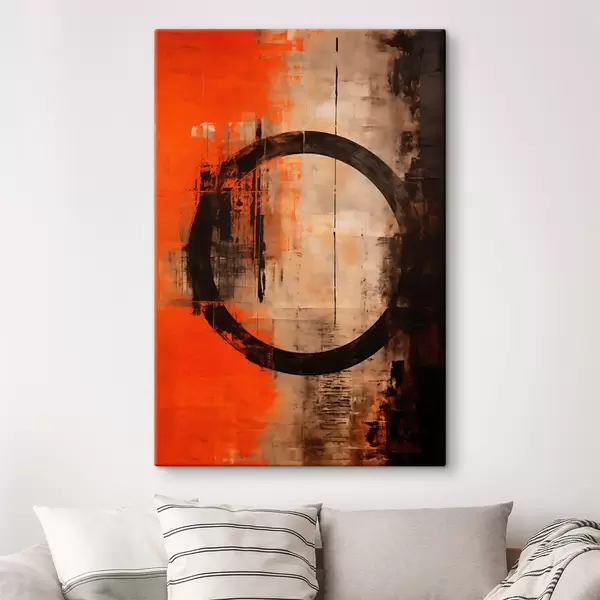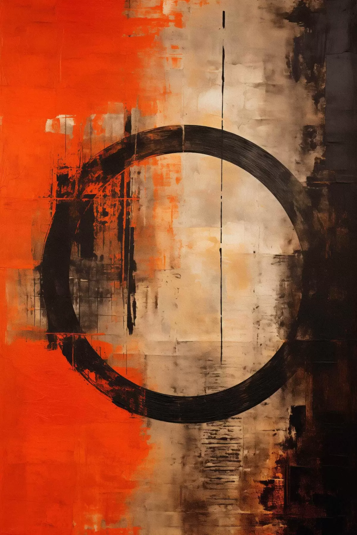 Картина Абстрактний малюнок з великим чорним колом і теплими текстурами s46528