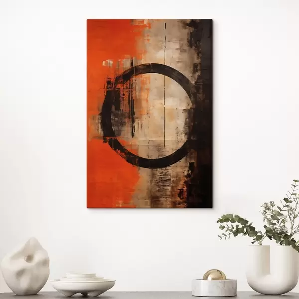 Картина Абстрактний малюнок з великим чорним колом і теплими текстурами Арт. s46528