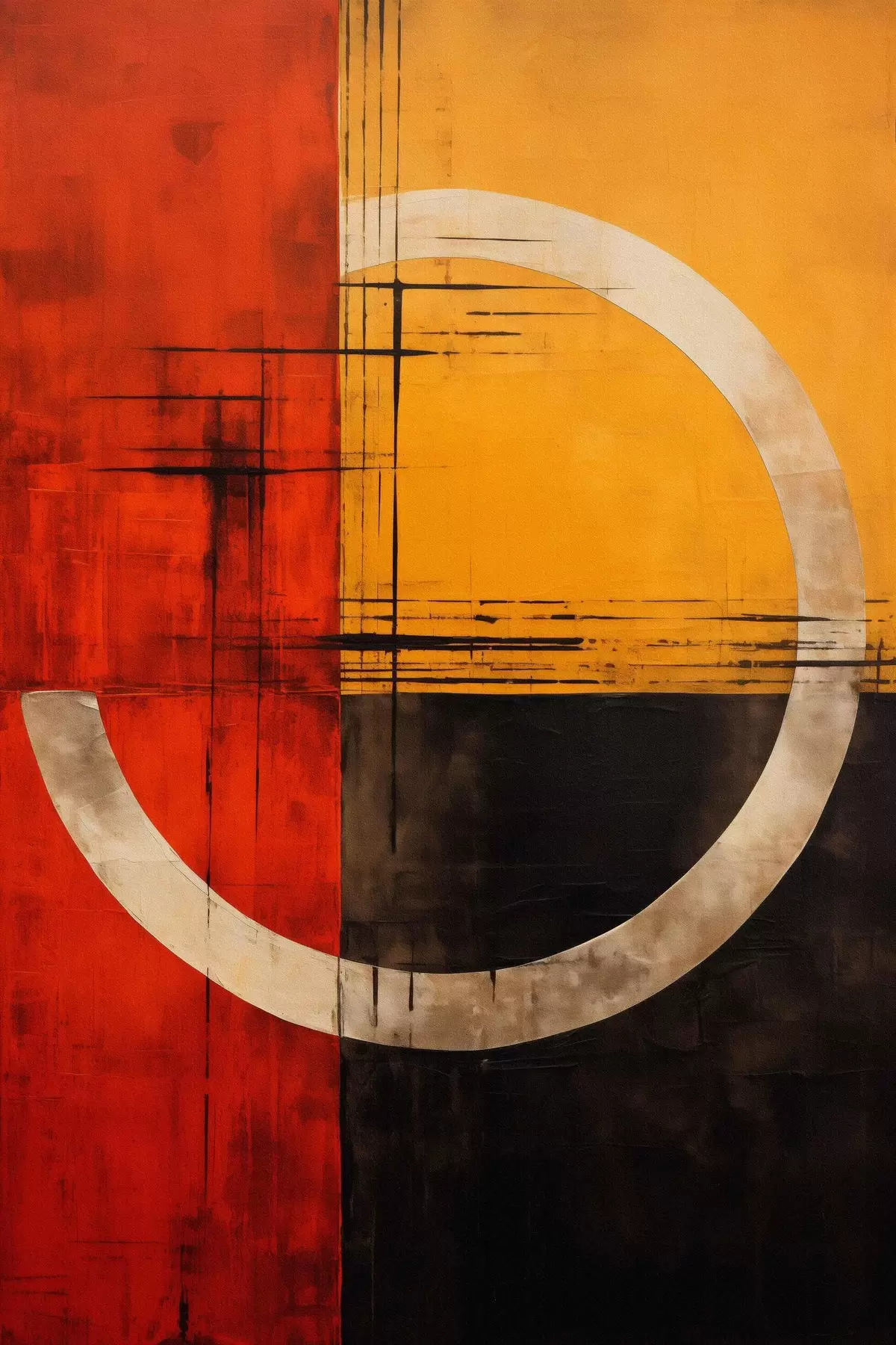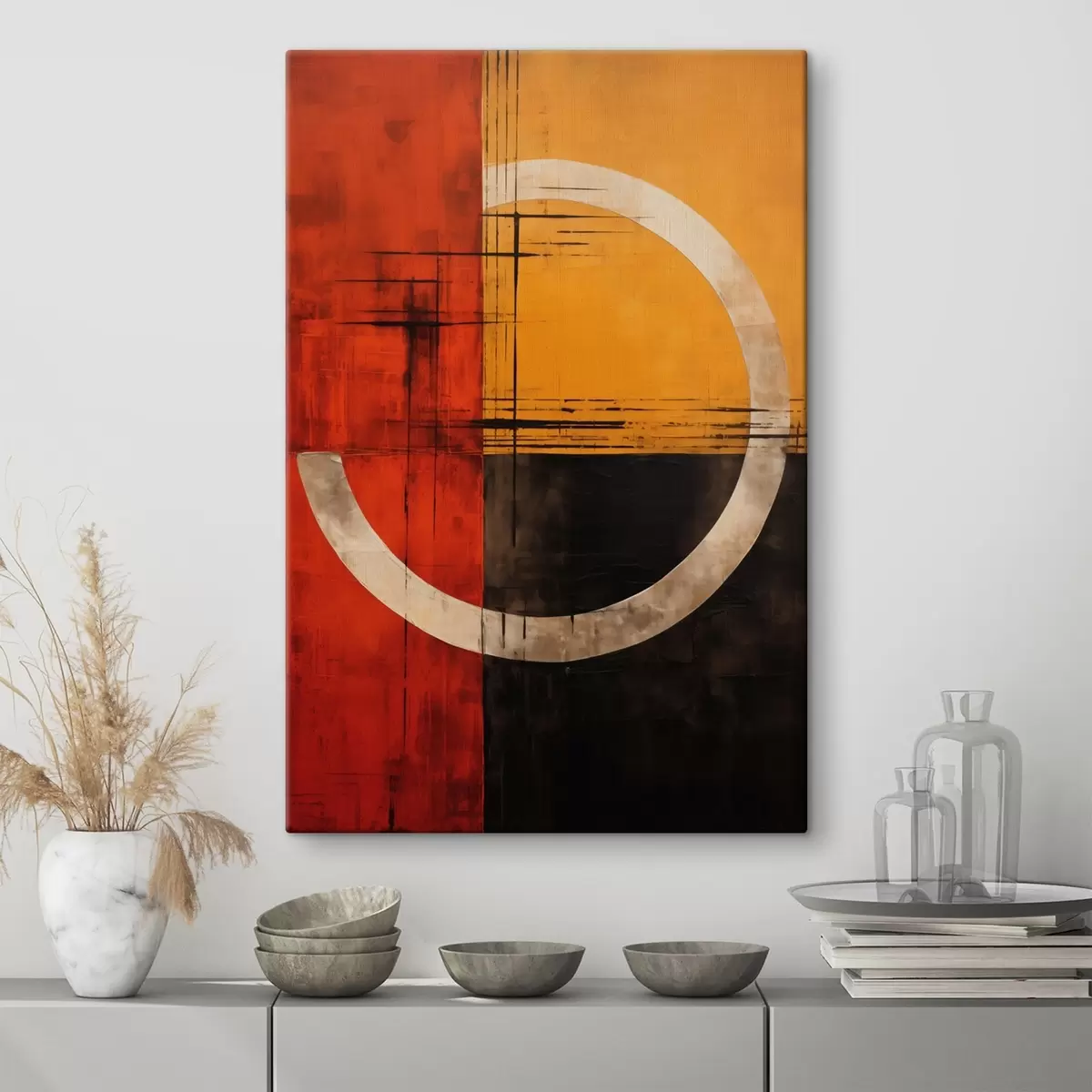 Картина Абстрактне коло на червоно-чорному тлі з лініями Арт. s46535