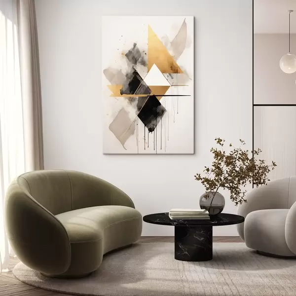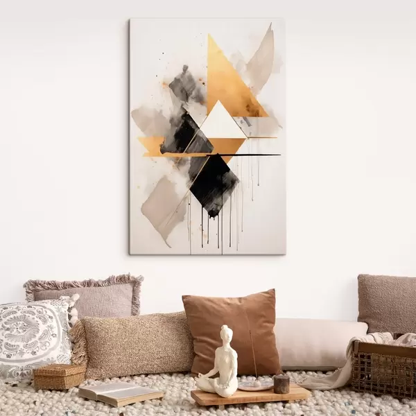 Картина Геометрія з трикутниками та чорним ромбом, бежеві штрихи Арт. s46539