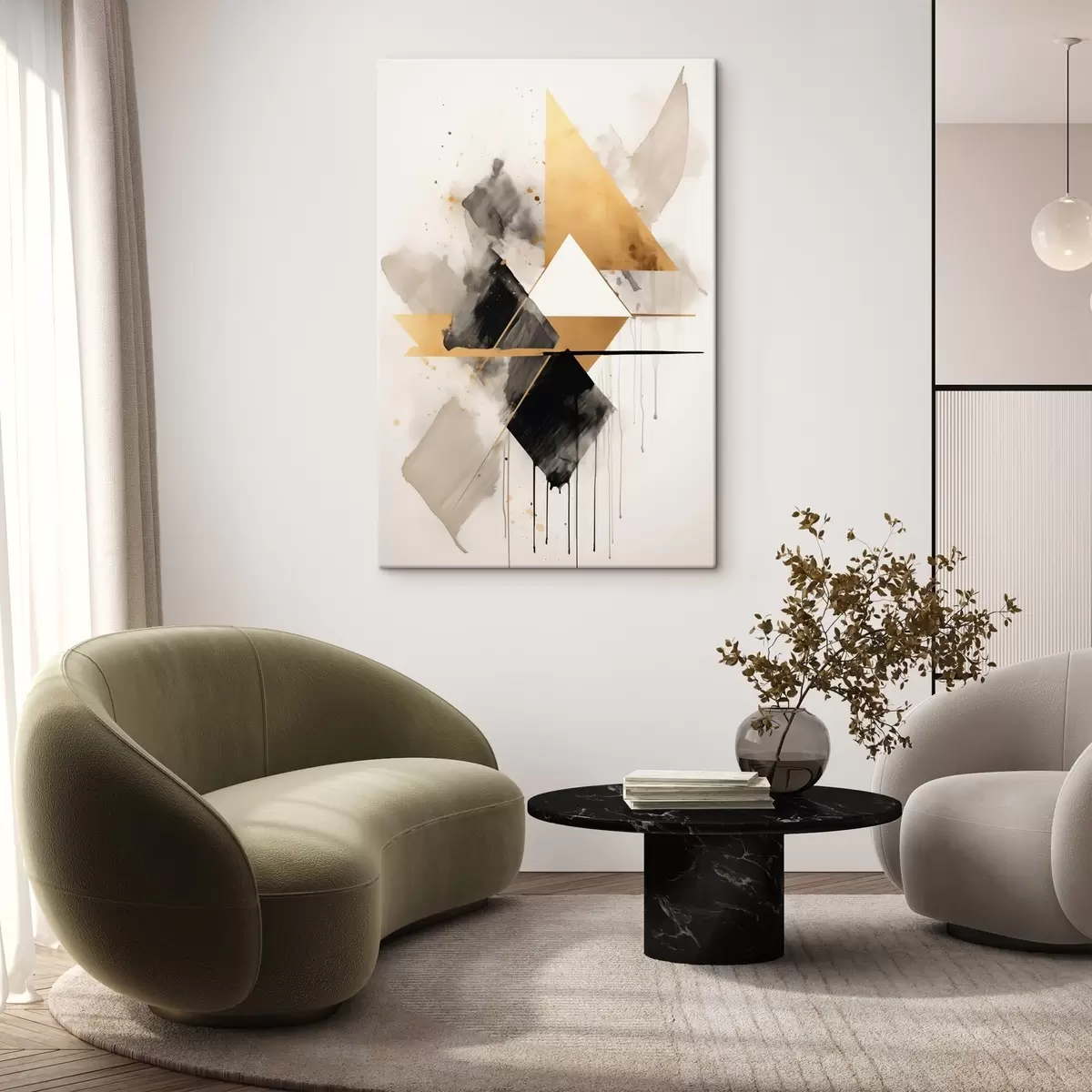 Картина Геометрія з трикутниками та чорним ромбом, бежеві штрихи s46539
