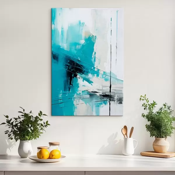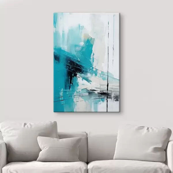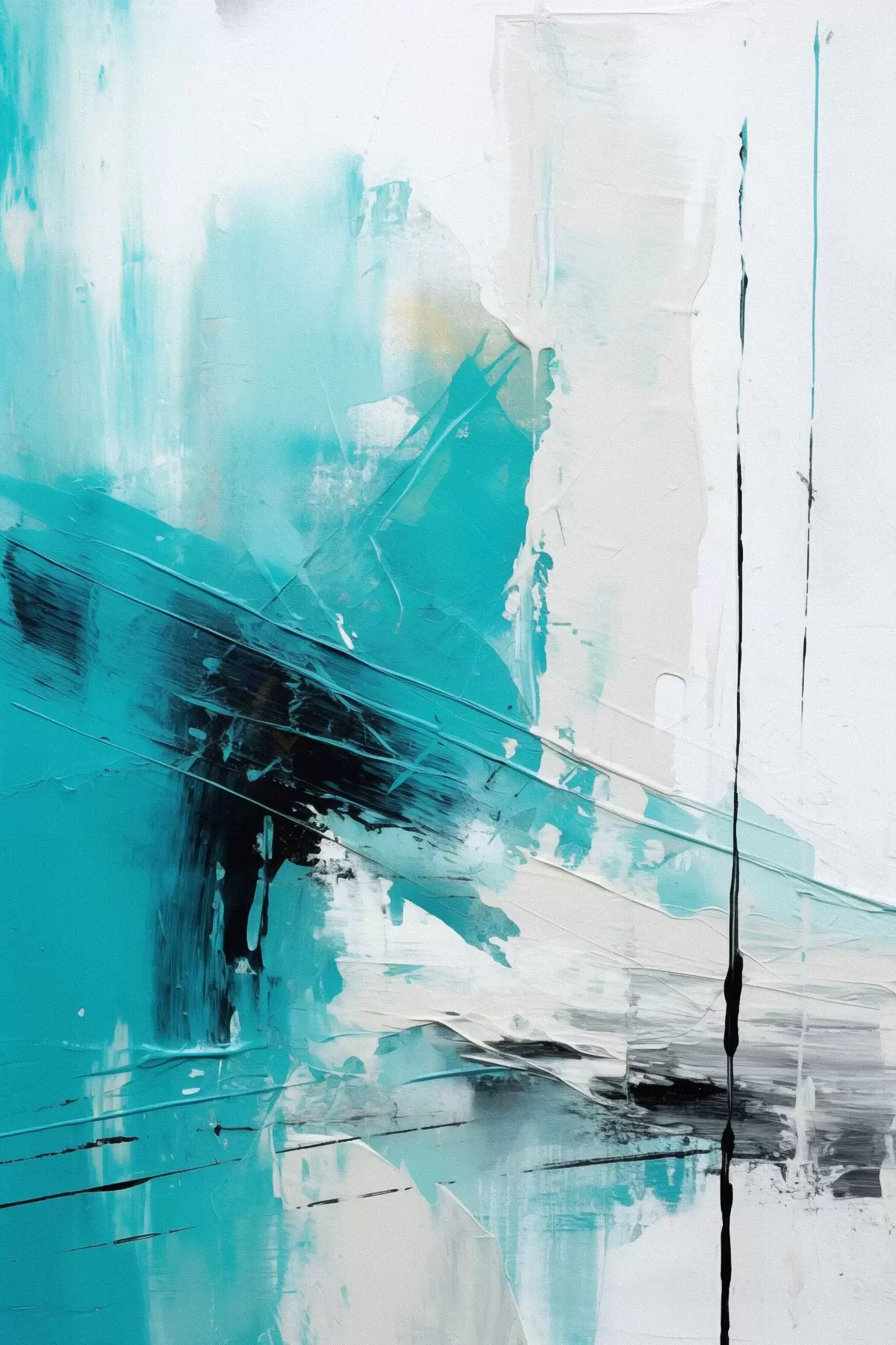 Картина Бірюзові штрихи на білому тлі з чорною рискою Арт. s46545
