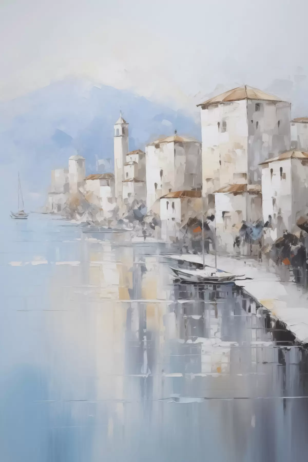 Картина Абстрактні будинки біля затоки імітація живопису s46673
