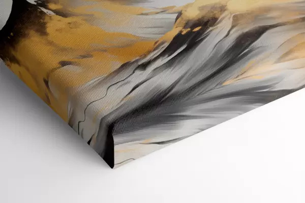Картина Текстуровані жовті та чорні гори зі сніговими вершинами, стиль тушового живопису, мінімалістичний гірський хребет Арт. s46683
