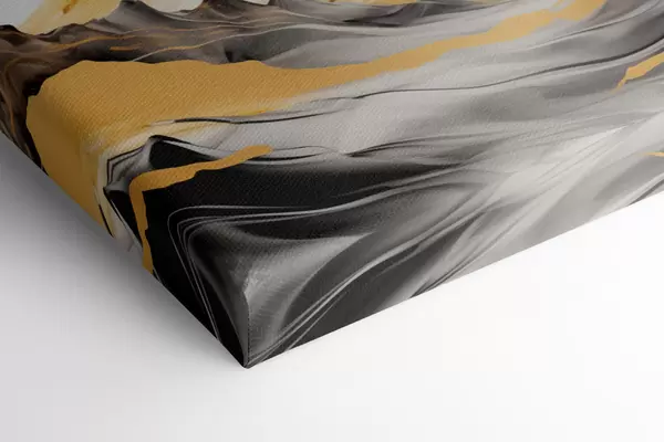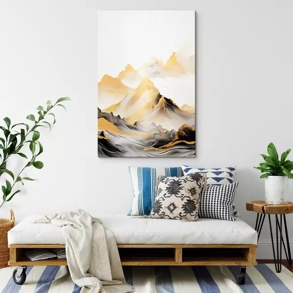 Картина Текстуровані жовті та чорні гори зі сніговими вершинами, стиль тушового живопису, мінімалістичний гірський хребет Арт. s46684