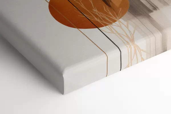 Картина Абстрактна імітація живопису з помаранчевими та сірими колами, листям і гілками, сучасний стиль, ефект акварелі s46697