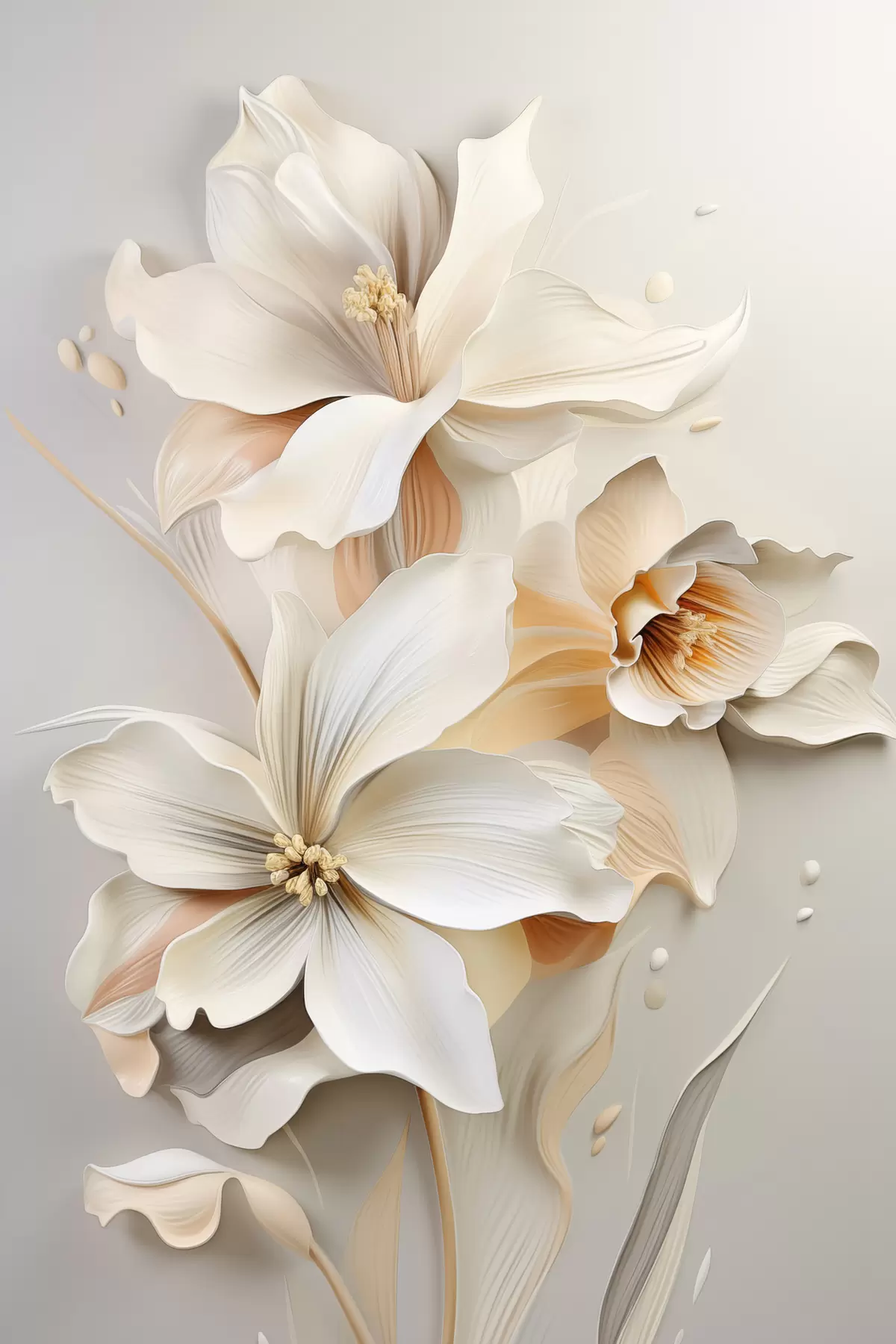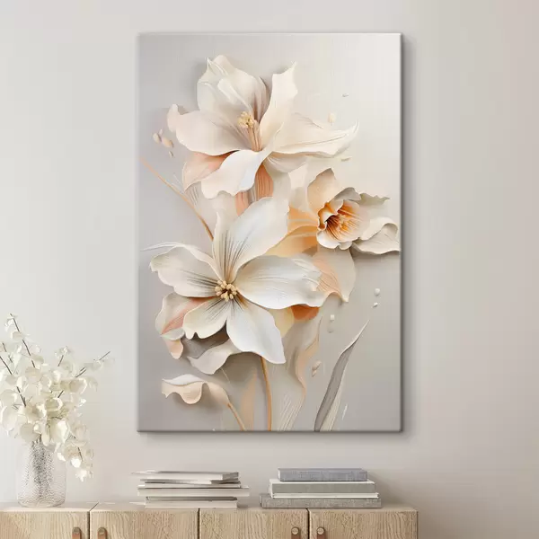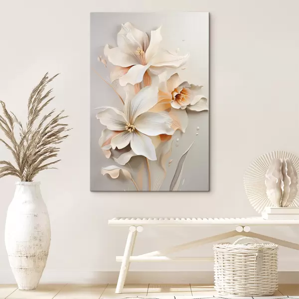 Картина Білі квіти, пелюстки з м'якими тінями, світло-бежевий фон, елегантна композиція, мінімалістичний стиль s46699