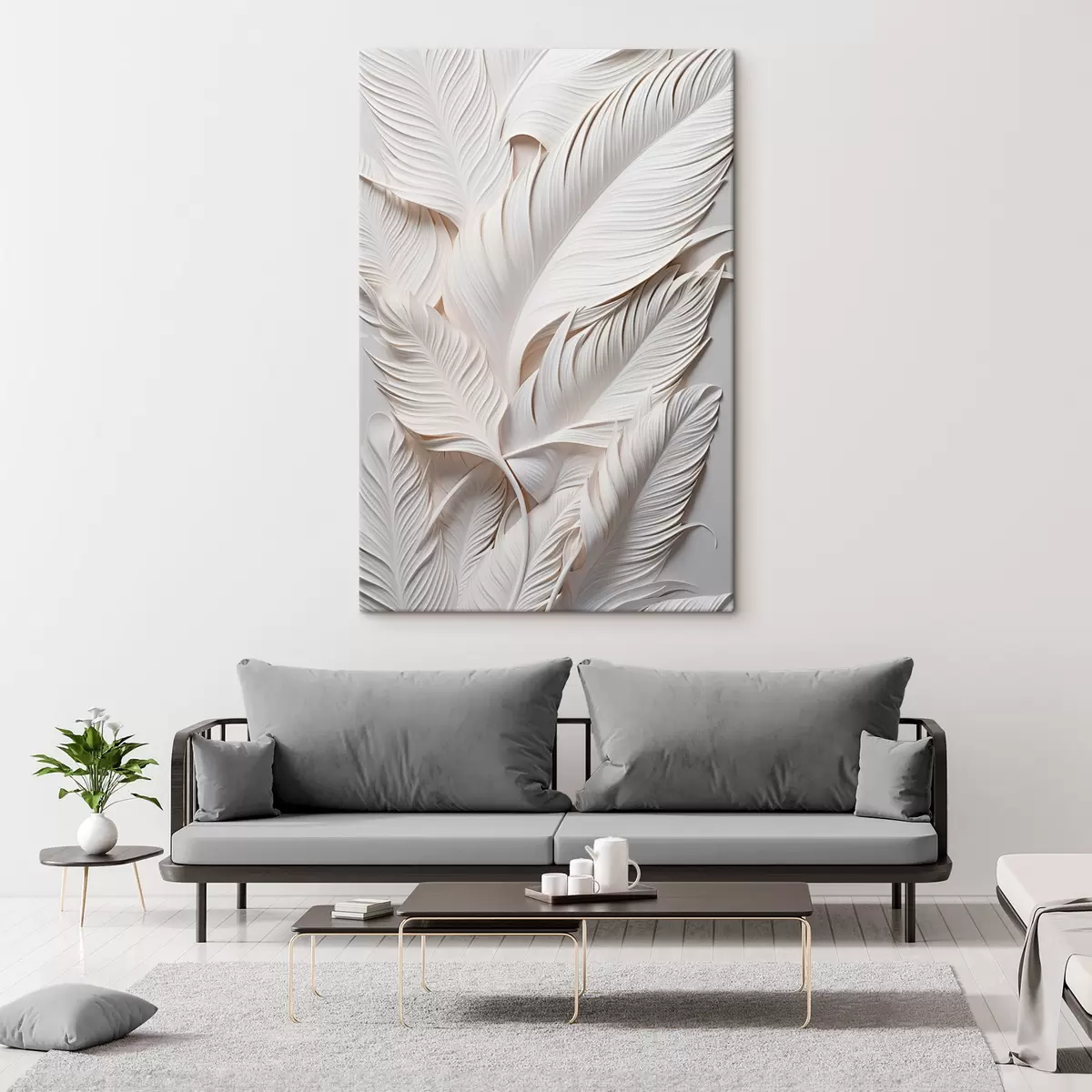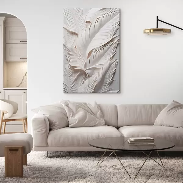 Картина Білі листя з витонченими деталями, що створюють ефект текстури та багатошаровості, мінімалістичне мистецтво Арт. s46706