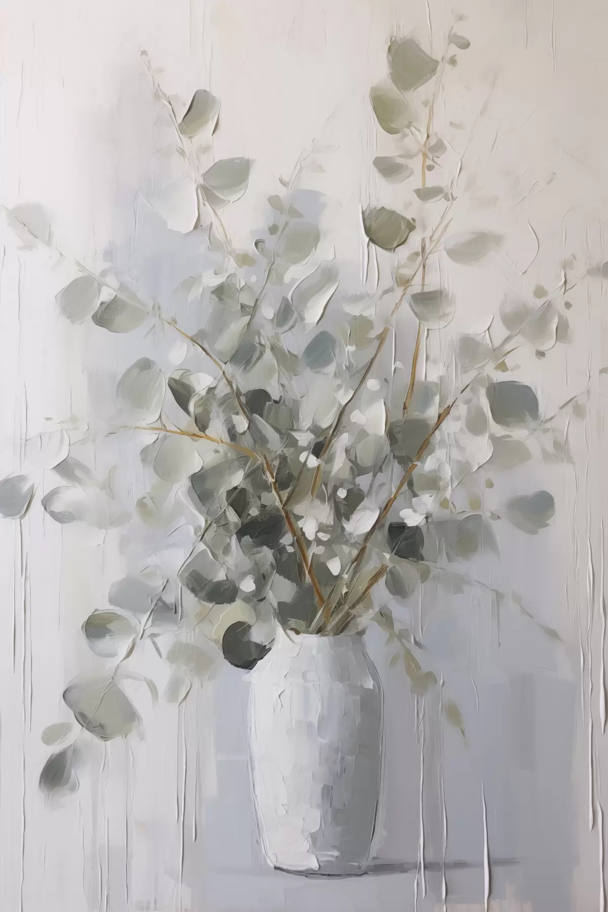 Картина Гілки з листям у вазі, імітація живопису s46720