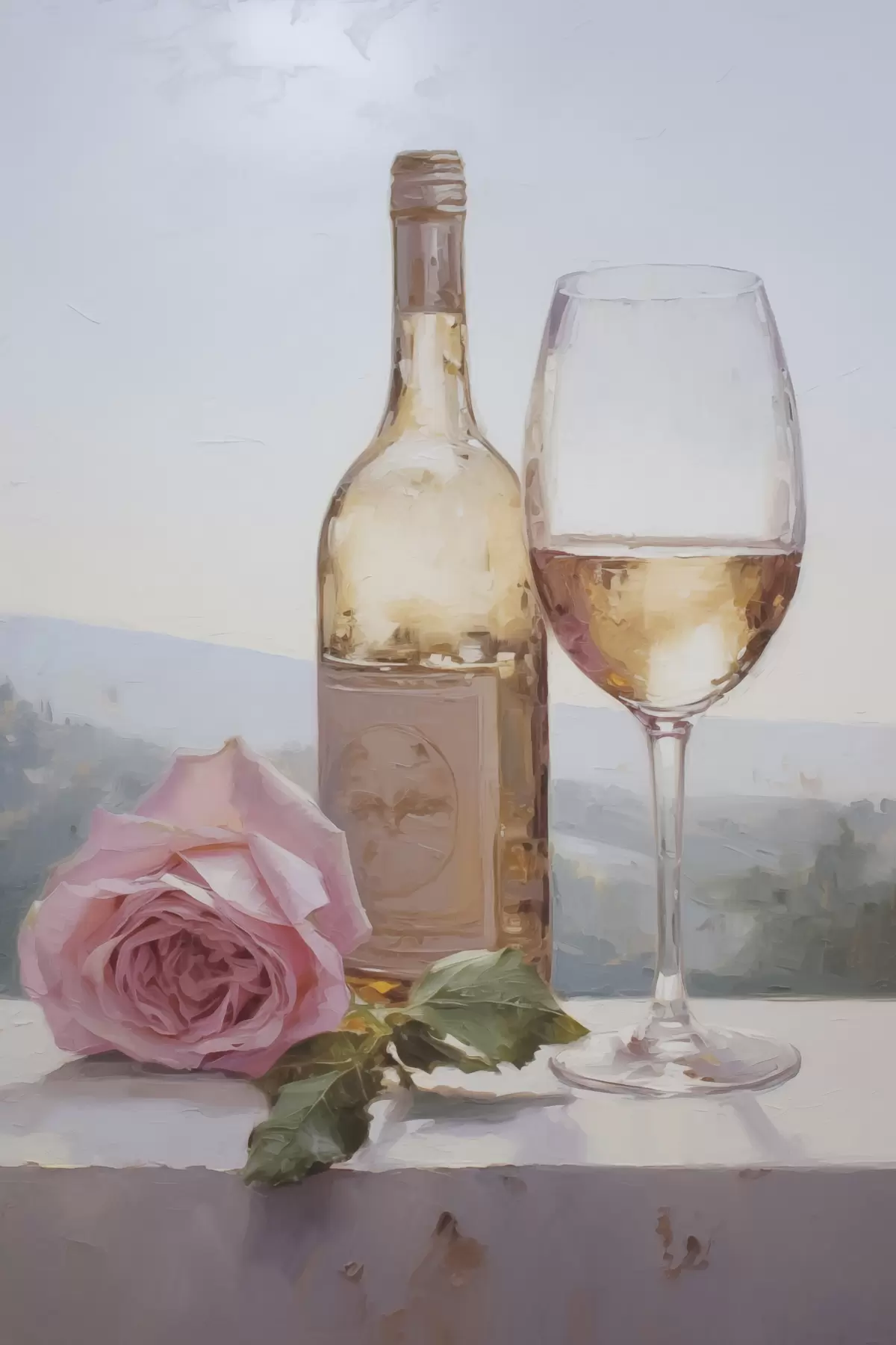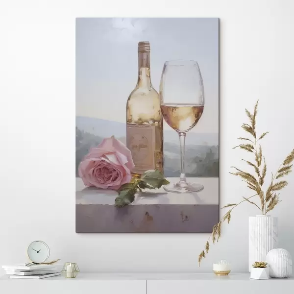 Картина Пляшка і келих вина, а також маленька собака в окулярах, імітація картини s46721