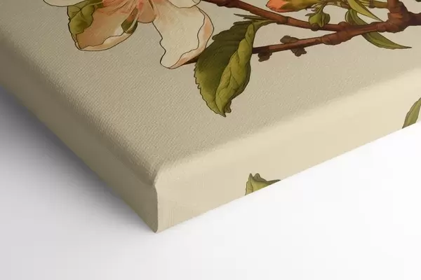Картина Квітуча гілка з білими квітами на бежевому тлі в стилі класичної ілюстрації Арт. s46923