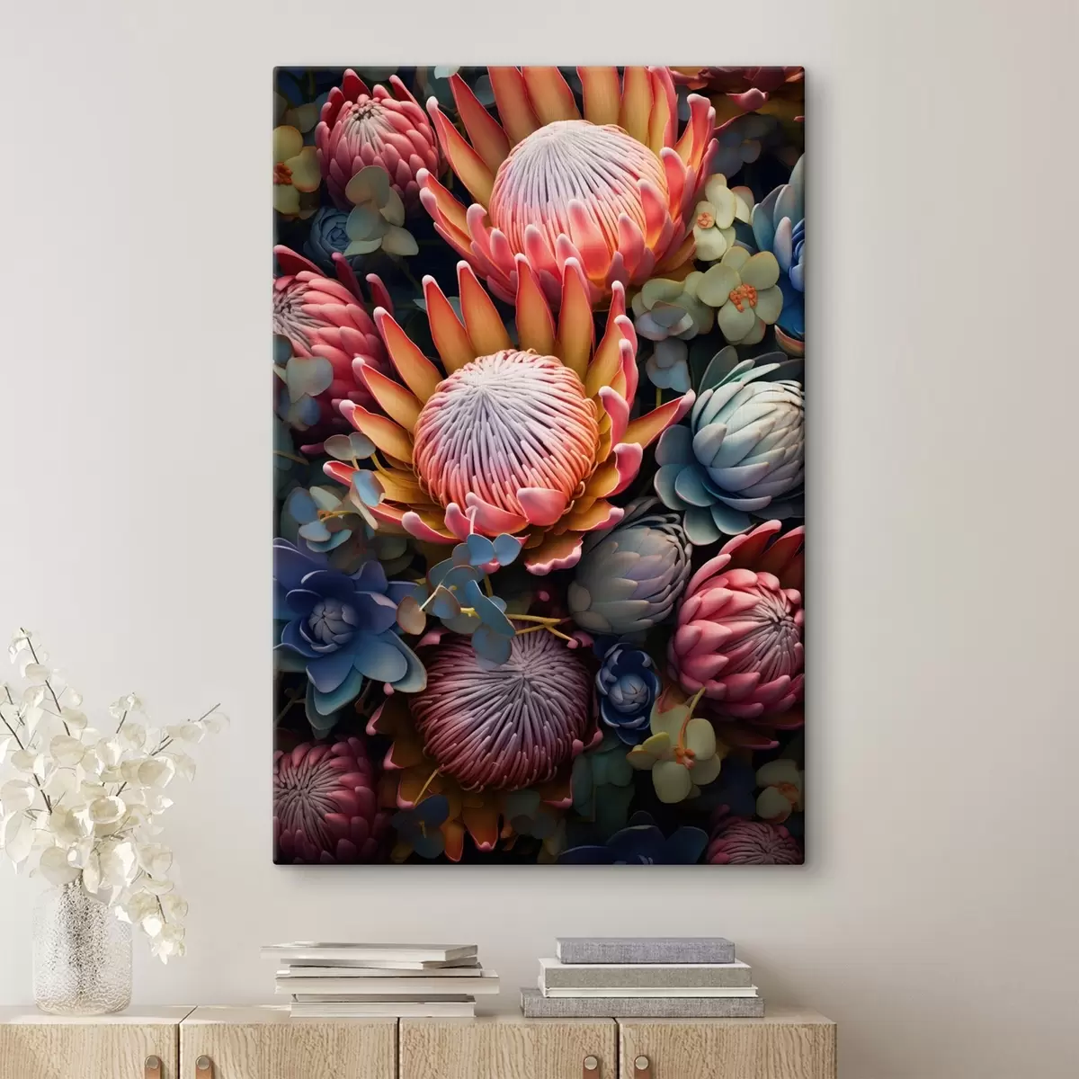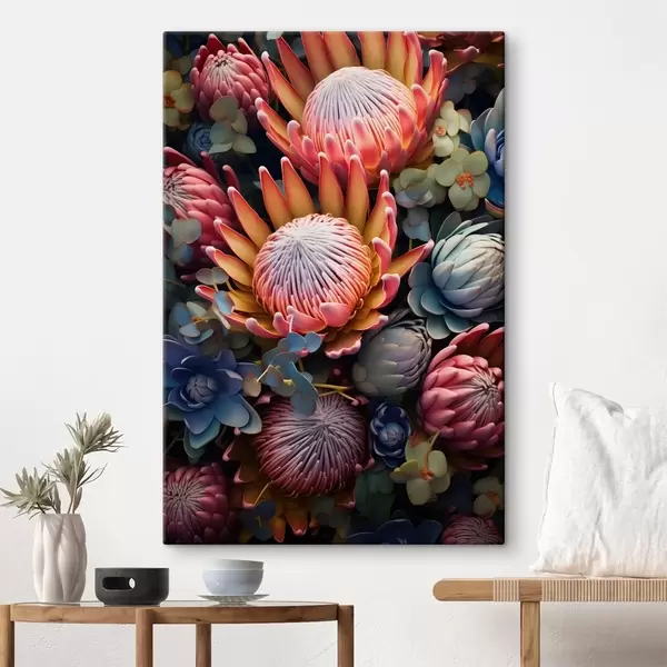 Картина Композиція з протеами, евкаліптами та сукулентами у фотореалістичному стилі цифрового мистецтва s46925