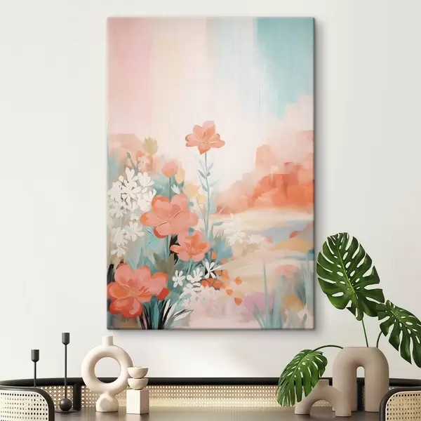 Картина Абстрактний квітковий пейзаж у рожево-блакитній гамі Арт. s46932