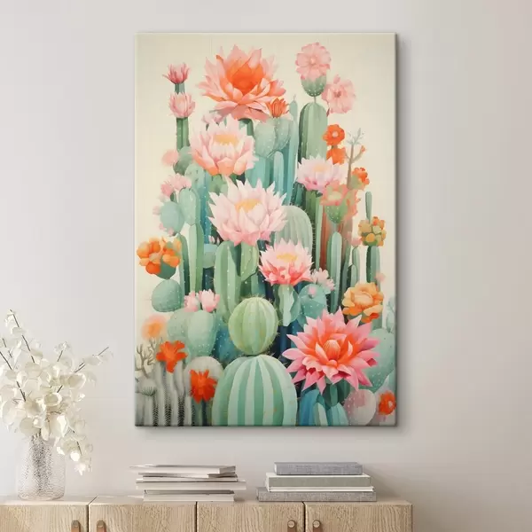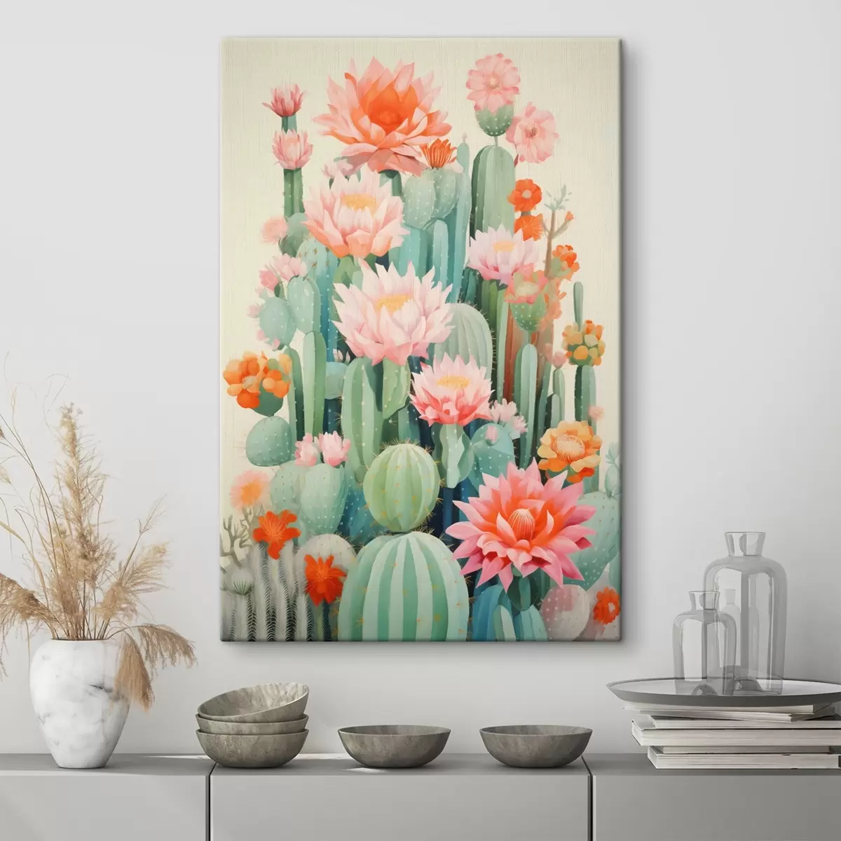 Картина Квітучі кактуси з рожевими та помаранчевими квітами в ілюстративному стилі Арт. s46934