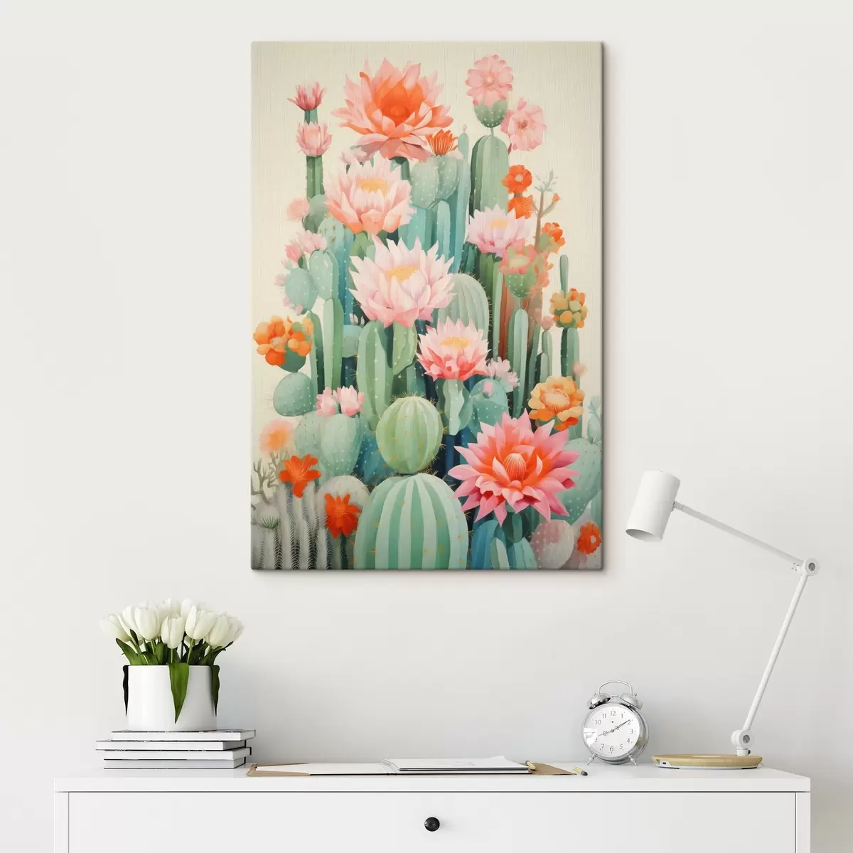 Картина Квітучі кактуси з рожевими та помаранчевими квітами в ілюстративному стилі s46934