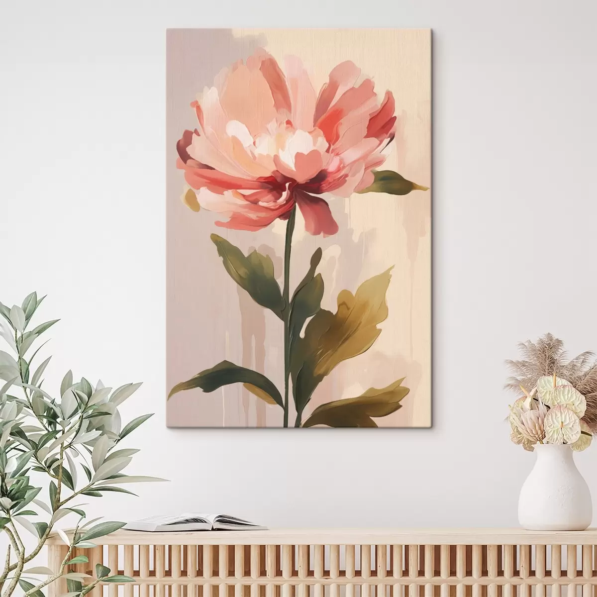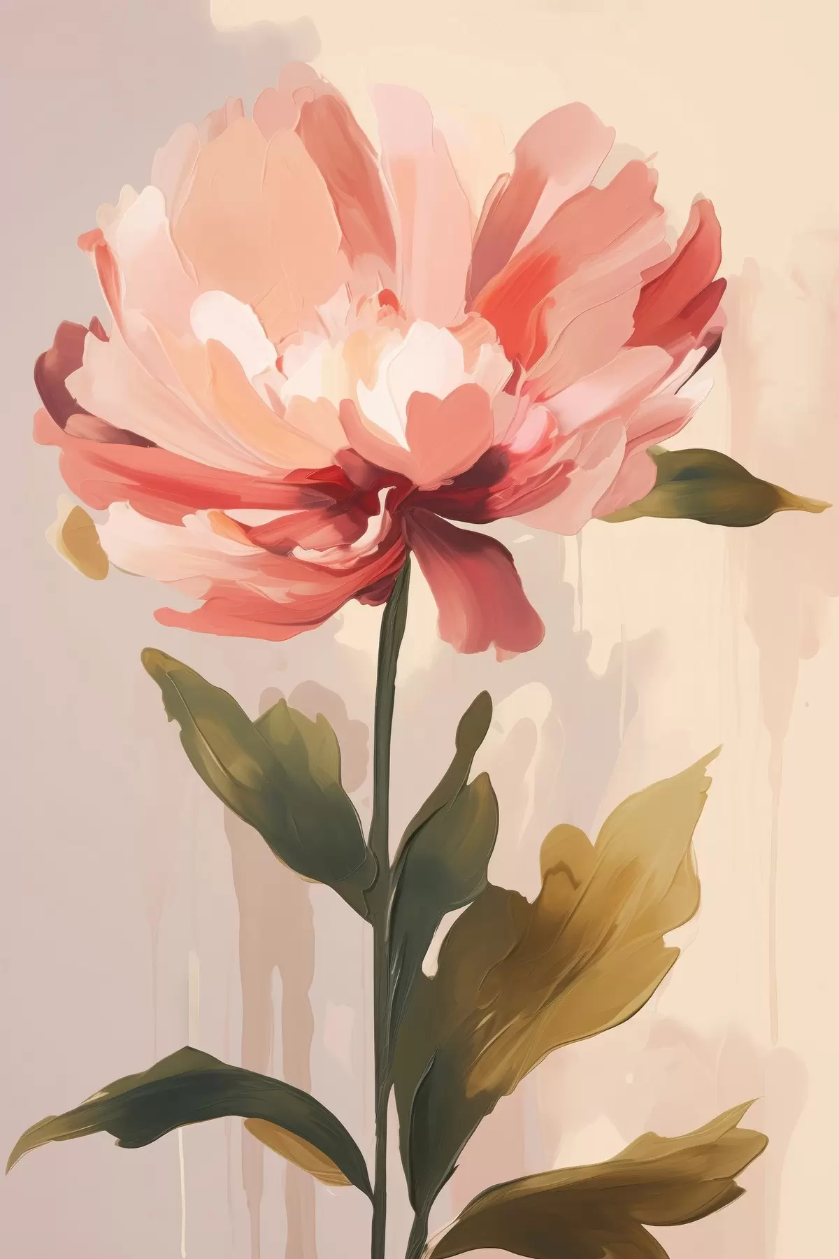Картина Півонія з коралово-рожевими пелюстками в стилі сучасної художньої ілюстрації Арт. s46948