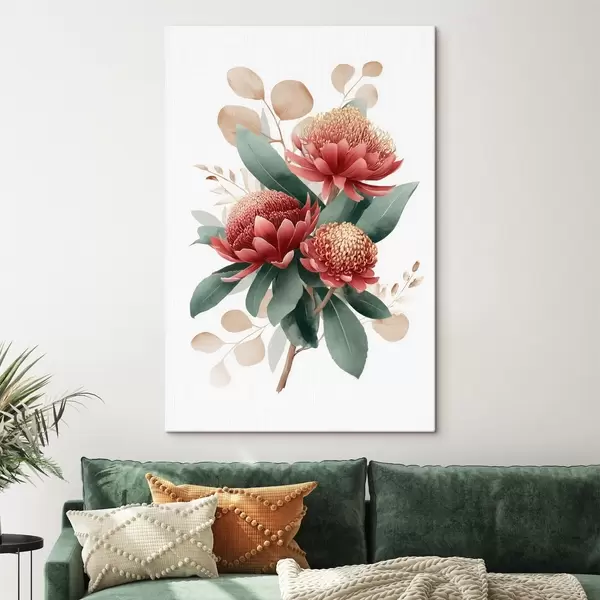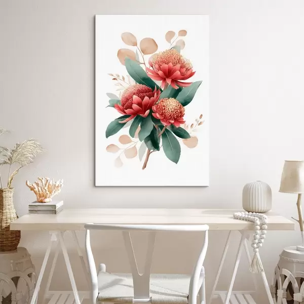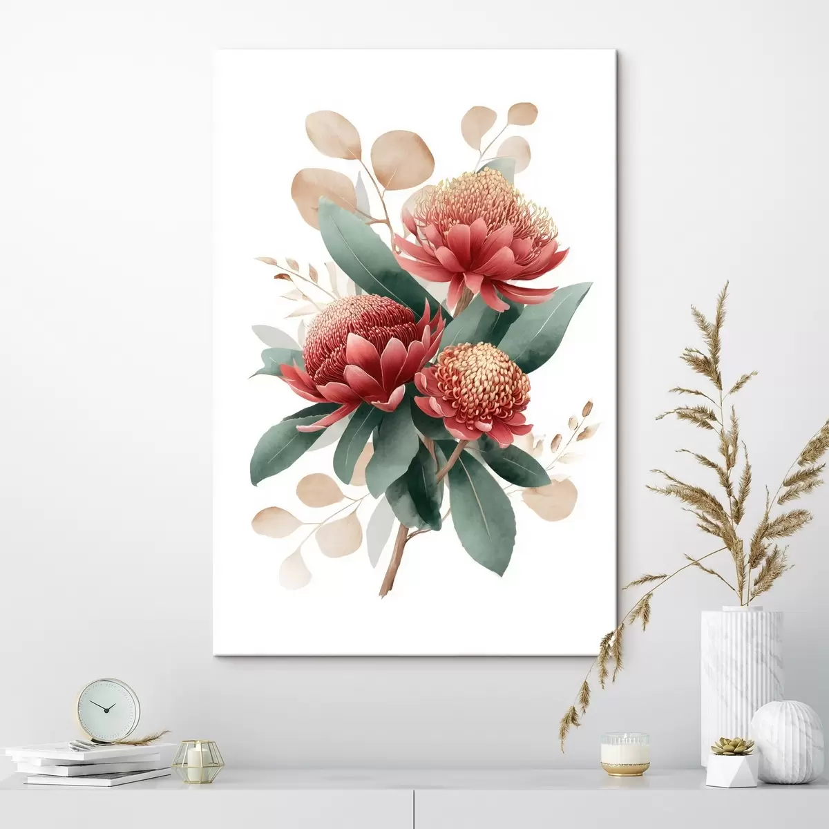 Картина Експресивний букет з протей та декоративного листя в стилі сучасної художньої ілюстрації s46954