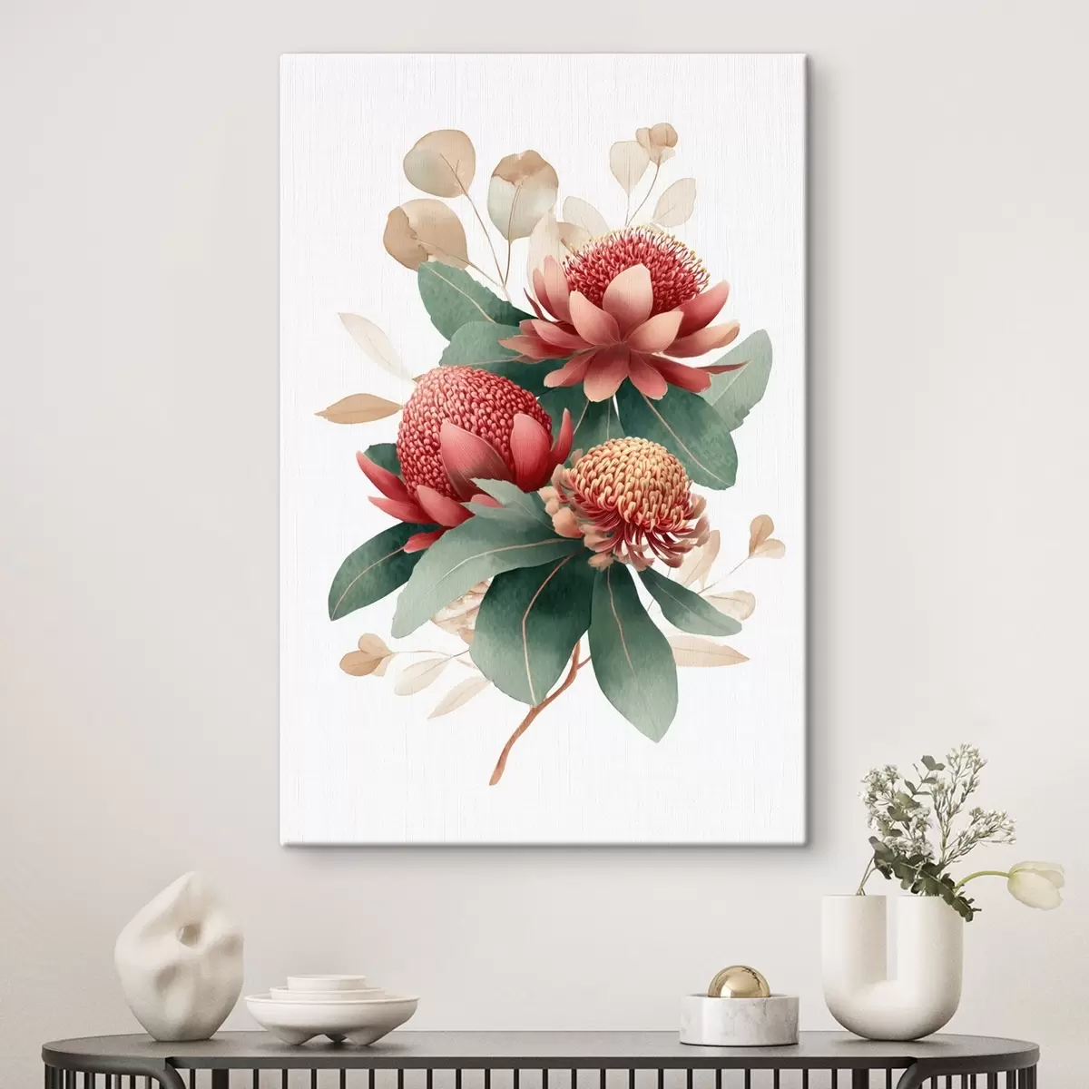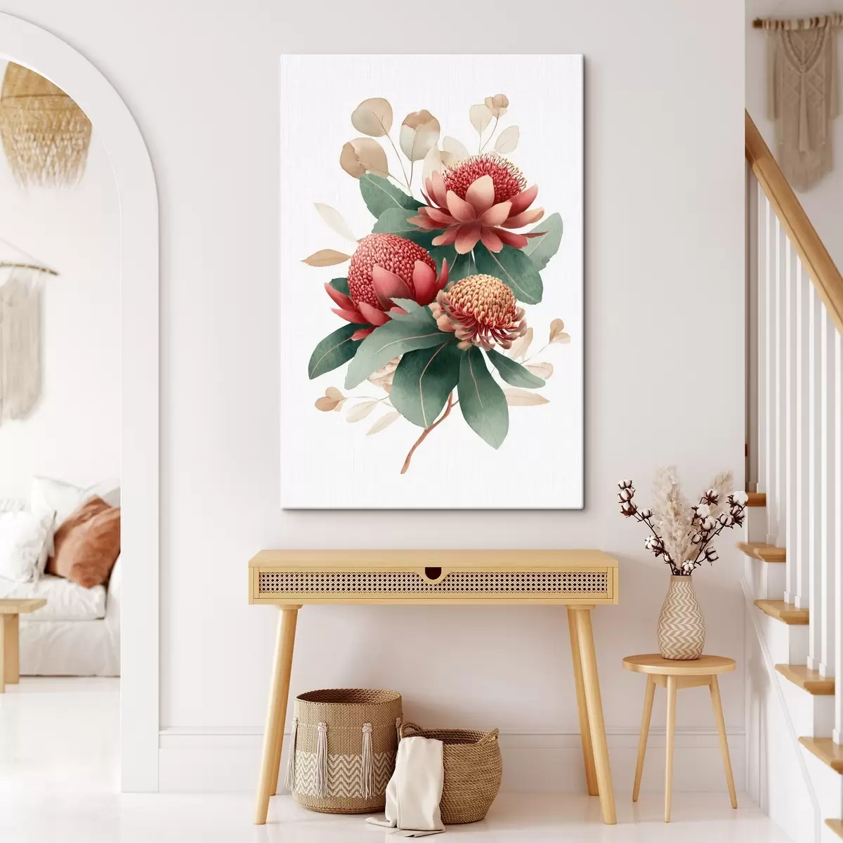 Картина Квіткова композиція з великими протеями та евкаліптом у стилі сучасної цифрової ілюстрації s46955