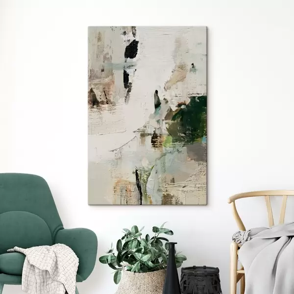 Картина Абстрактна композиція в пастельних тонах з темно-зеленими акцентами в стилі олійного живопису Арт. s46960