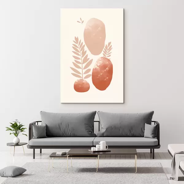Картина Абстрактні форми, текстуровані камені та листя в приглушених персикових і теракотових тонах, мінімалістичний кремовий фон Арт. s47012
