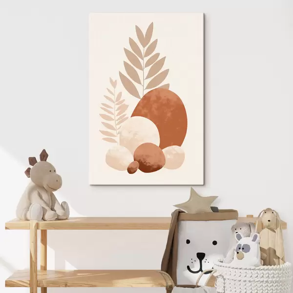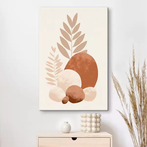 Картина Абстрактні форми, текстуровані камені та листя в приглушених персикових і теракотових тонах, мінімалістичний кремовий фон Арт. s47013
