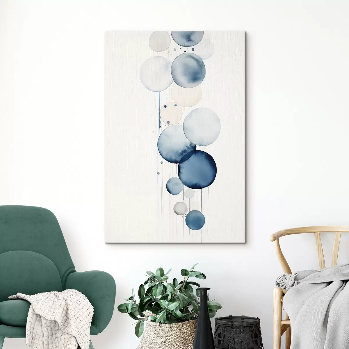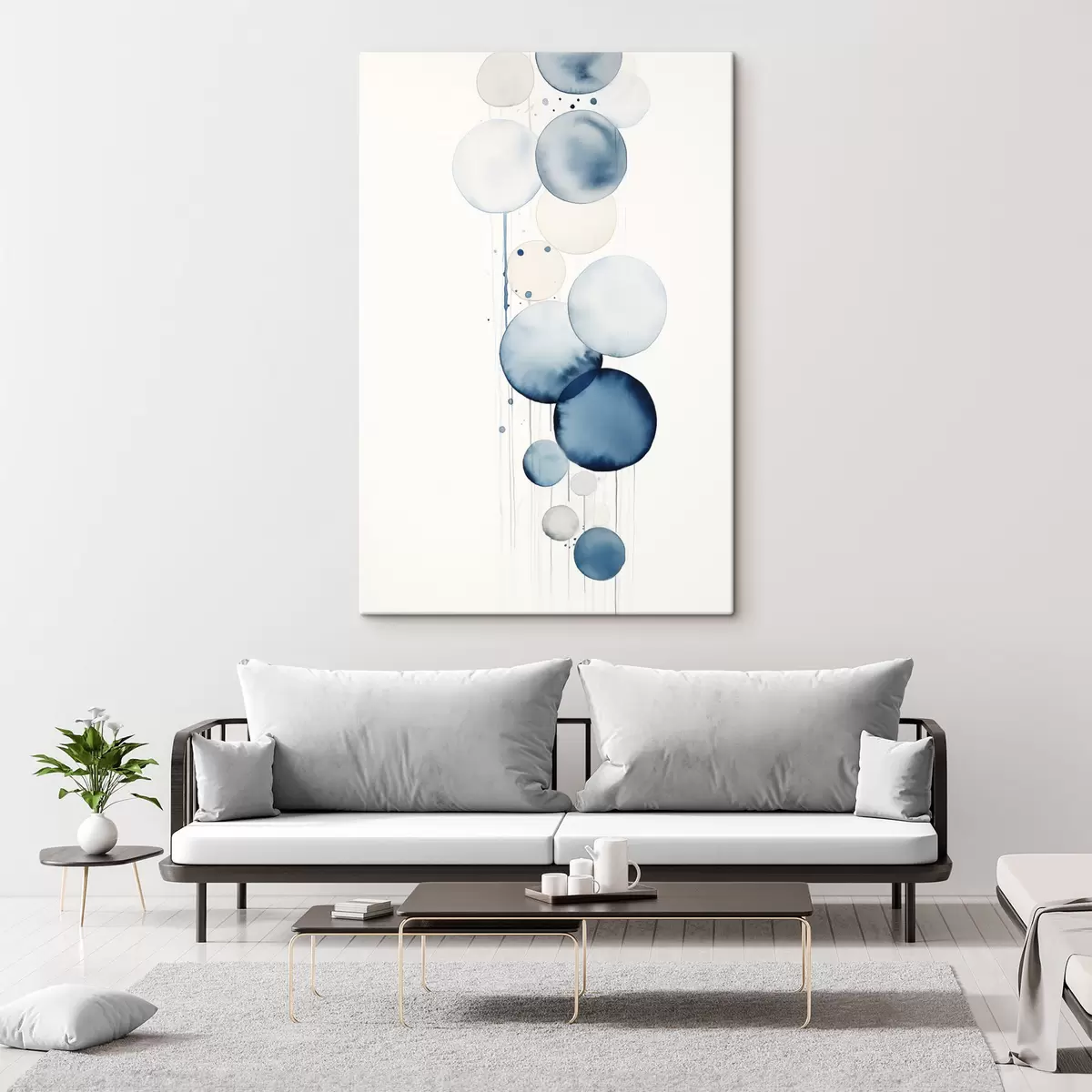 Картина Абстрактні текстуровані синьо-білі акварельні кола різного розміру на білому тлі s47020