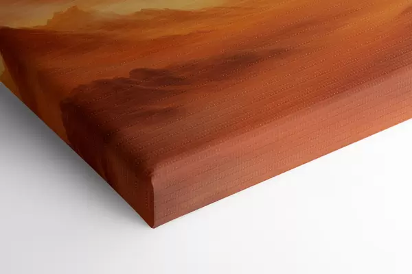 Картина Величезний помаранчевий пустельний ландшафт з високими скелястими горами під туманним, сонячним небом з рідкими хмарами Арт. s47029