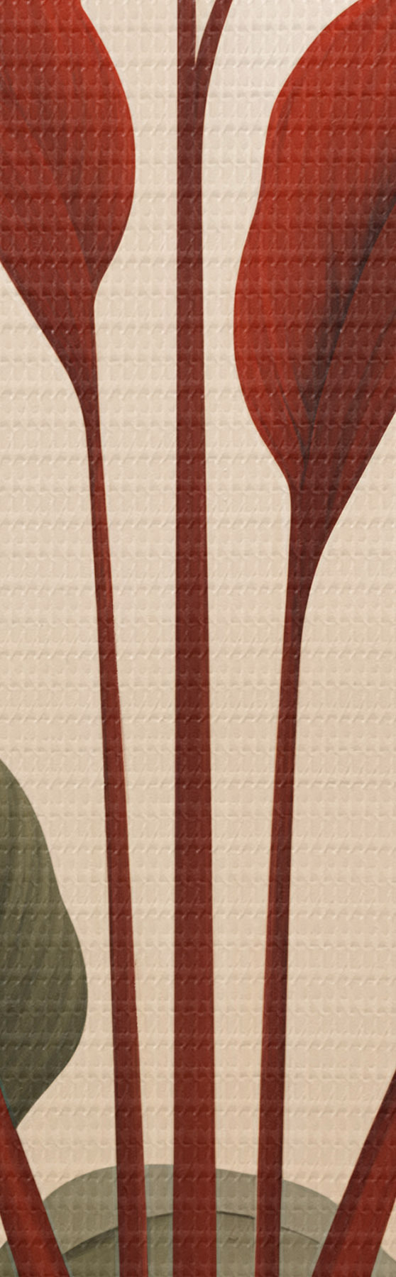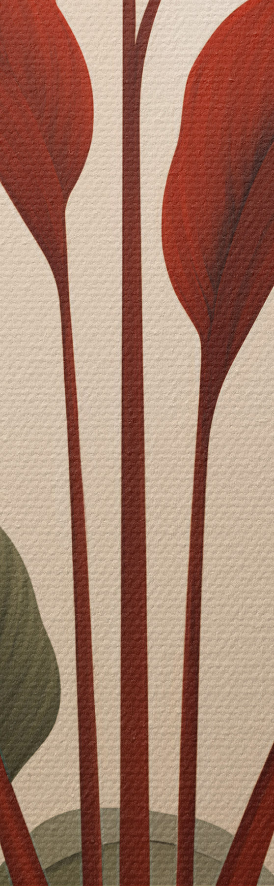 Картина Абстрактні рослини в горщиках з великими зеленими і червоними листям перед кремовою аркою s47033