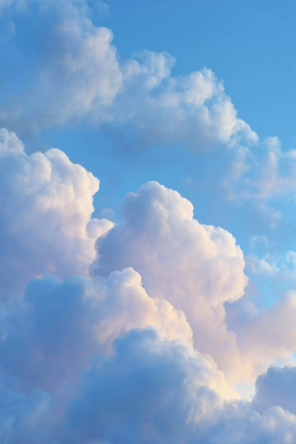 Картина Об'ємні хмари в м'якій блакитно-рожевій палітрі в стилі фотореалістичної цифрової графіки Арт. s47088