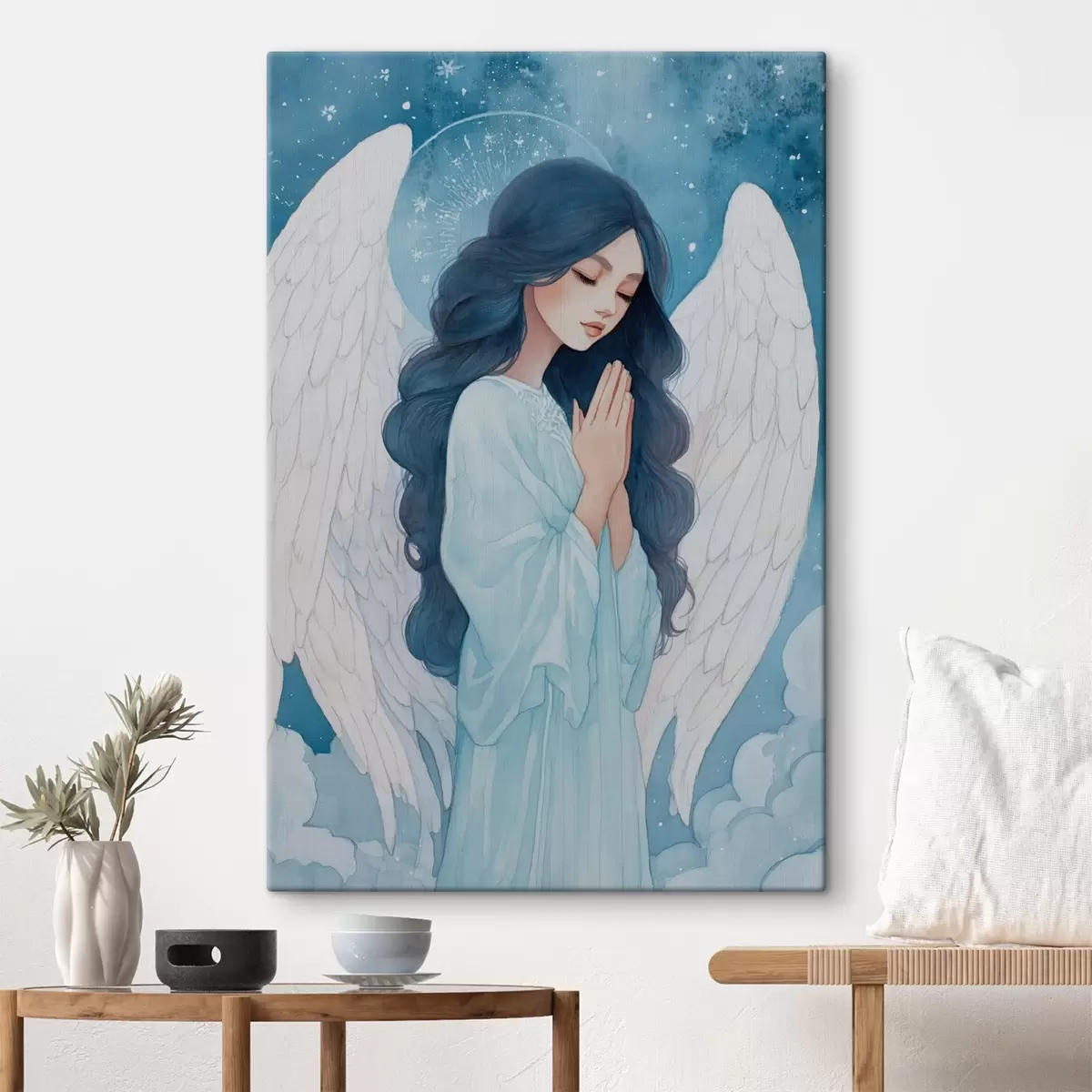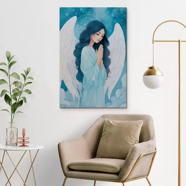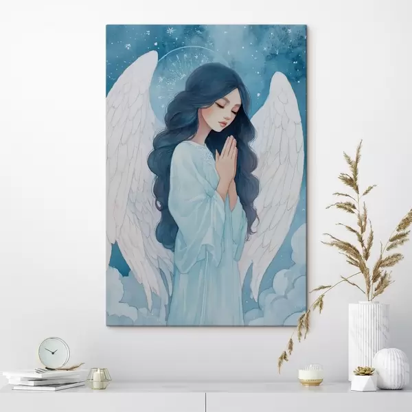 Картина Чарівна ілюстрація ангела серед хмар у біло-блакитній кольоровій гамі Арт. s47095
