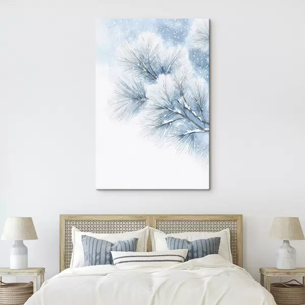 Картина засніжена соснова гілка в акварельному стилі s47114