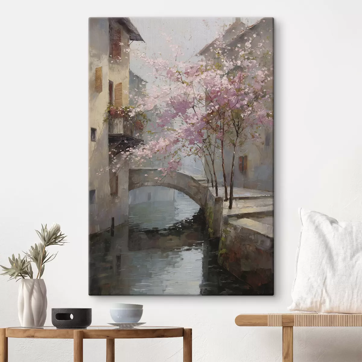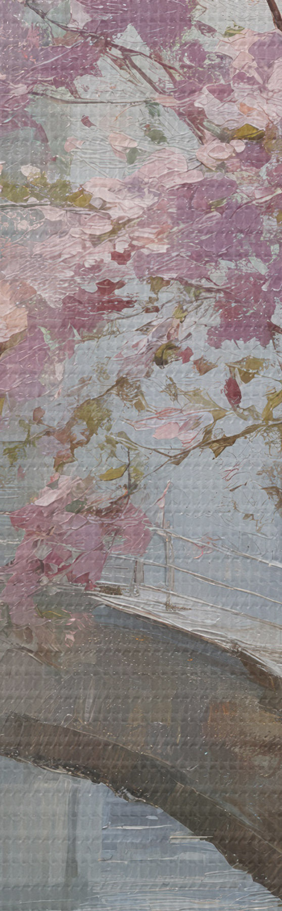 Картина романтичний міський пейзаж з квітучим деревом у стилі олійного живопису s47127