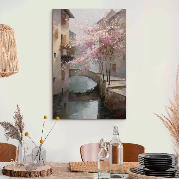 Картина романтичний міський пейзаж з квітучим деревом у стилі олійного живопису Арт. s47127