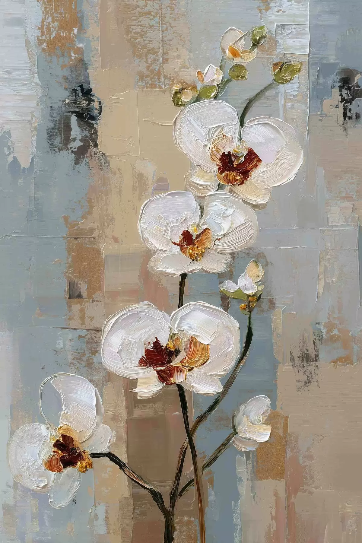 Картина білі квіти орхідеї в стилі олійного живопису s47131