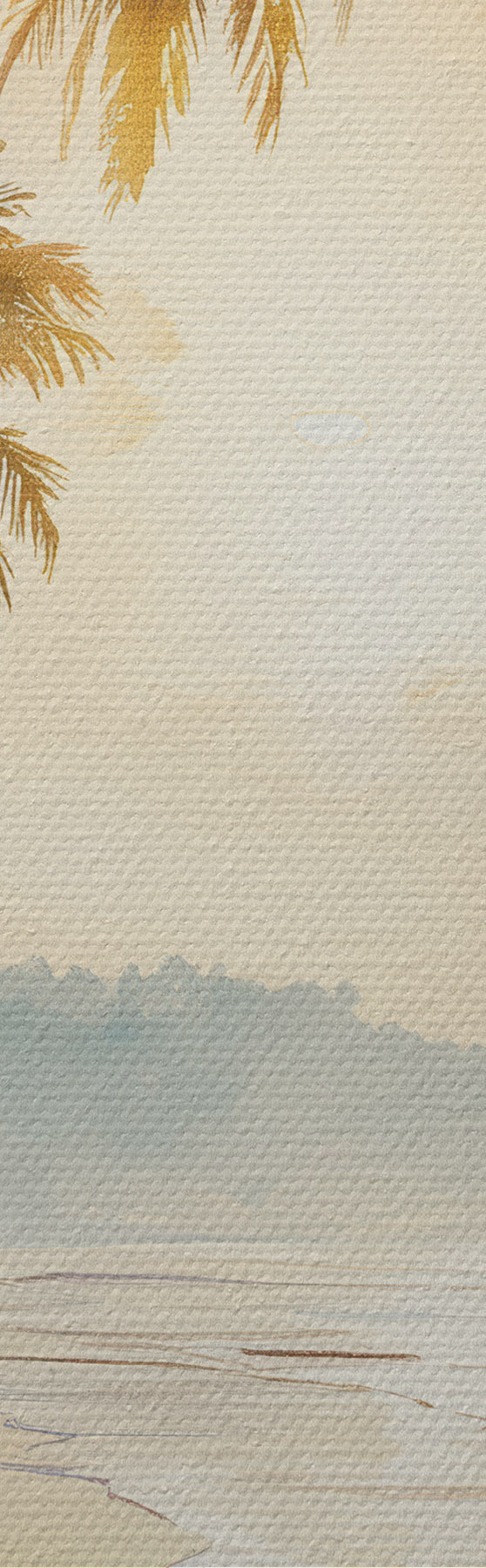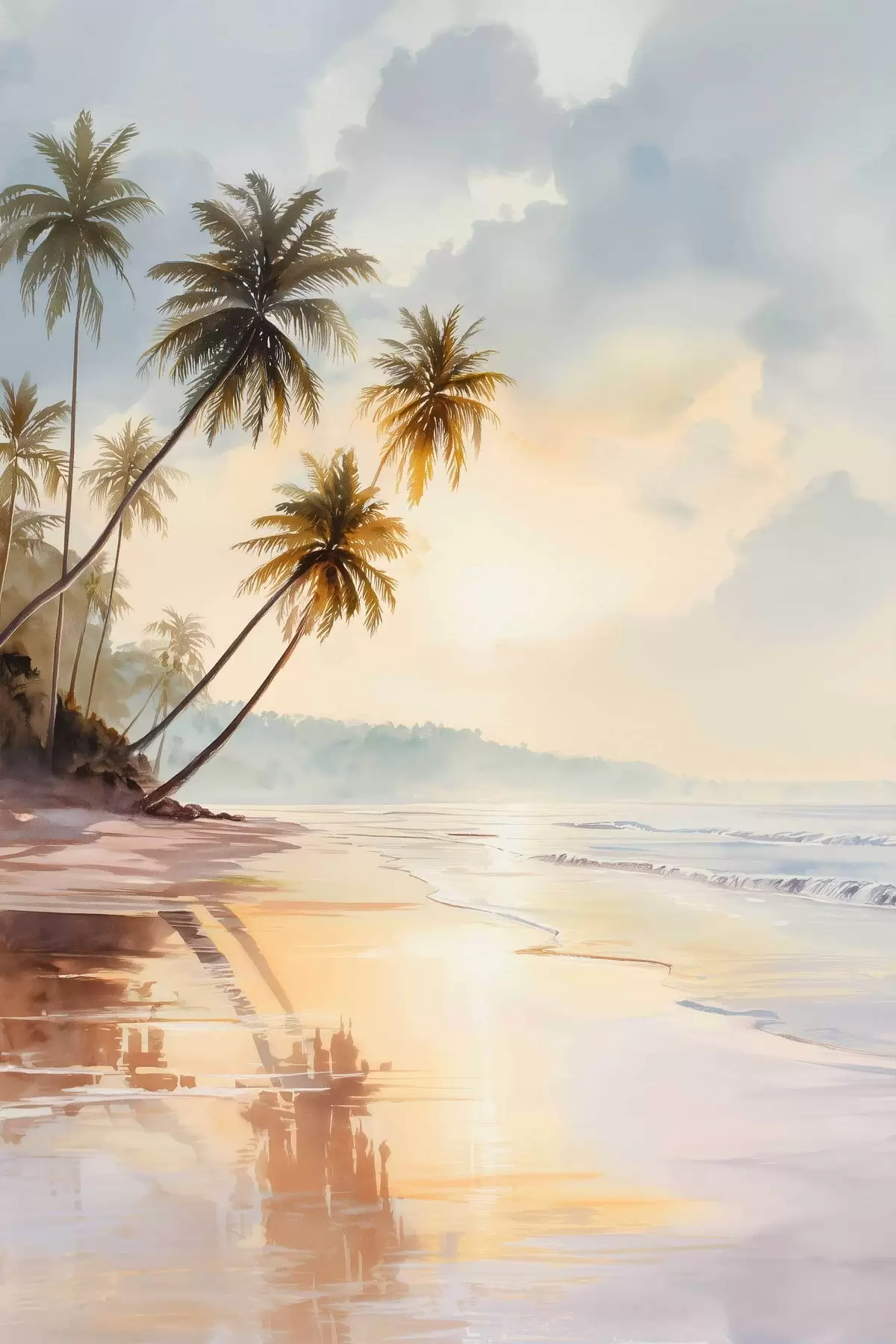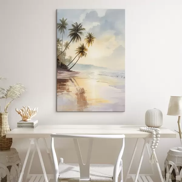 Картина захід сонця на пляжі острова в стилі акварелі Арт. s47136
