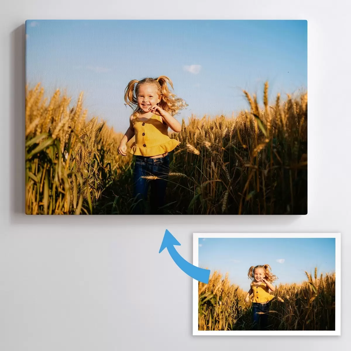 Ми можемо надрукувати вашу фотографію на полотні або плакаті. Завантажте та налаштуйте своє фото в нашому редакторі всього за 5 хвилин.