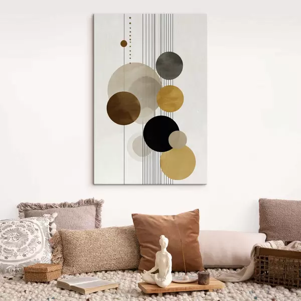Картина абстракція з колами та лініями в теплих кольорах s47237