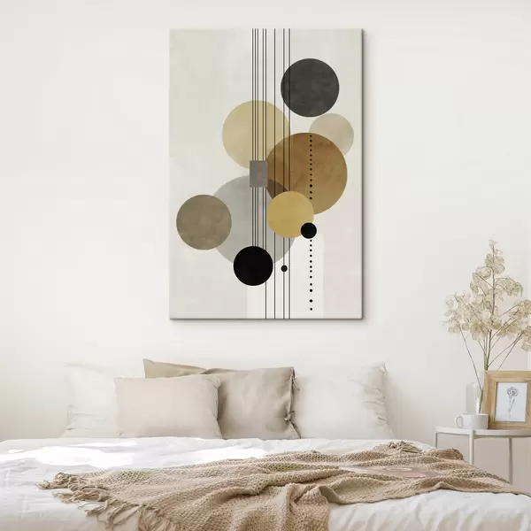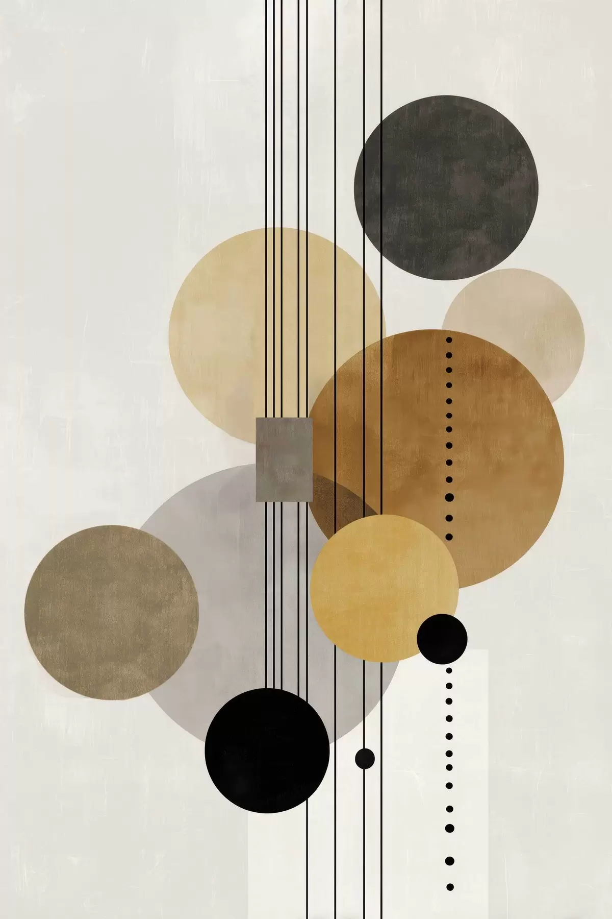 Картина абстракція з колами та лініями в теплих кольорах Арт. s47238
