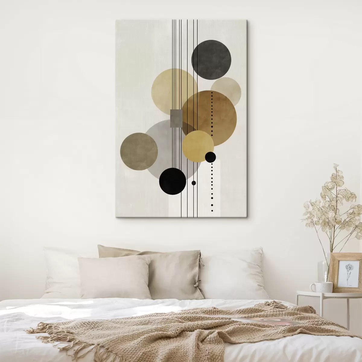 Картина абстракція з колами та лініями в теплих кольорах s47238