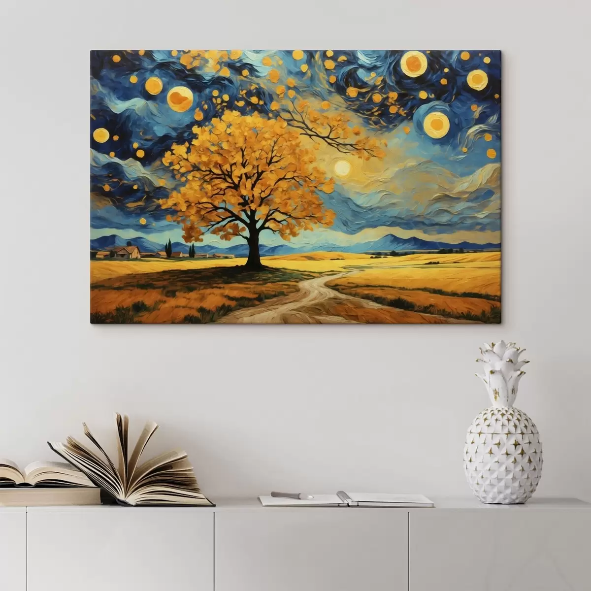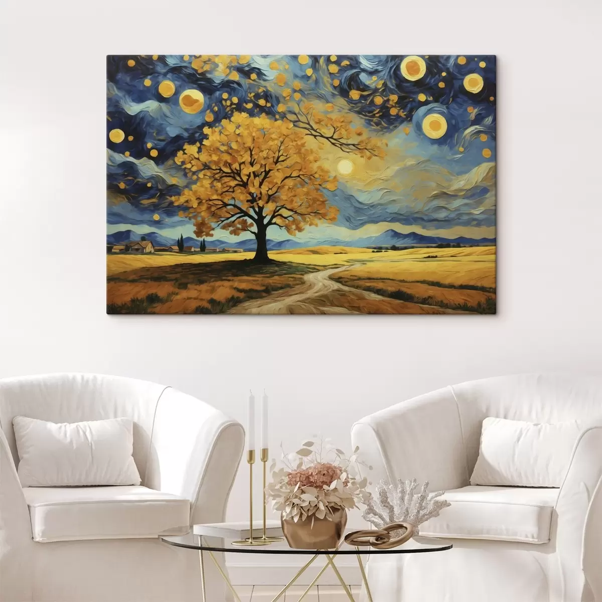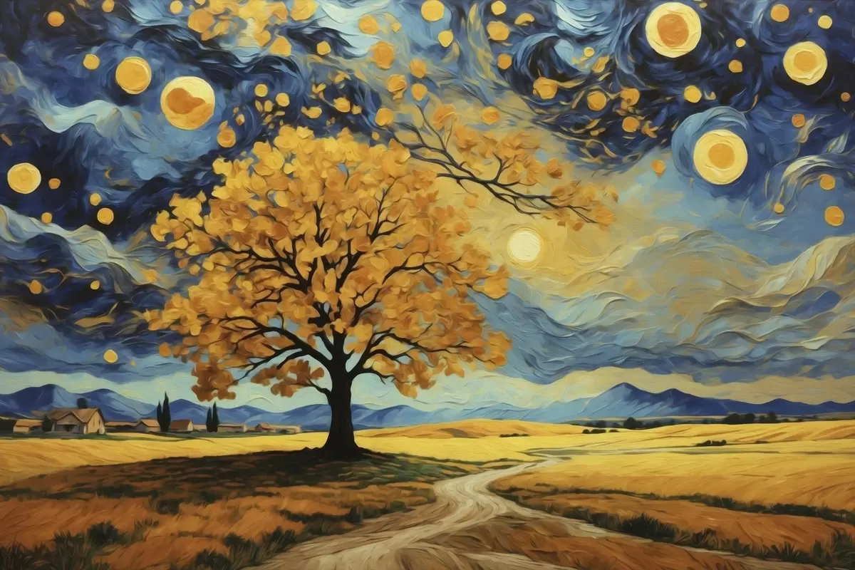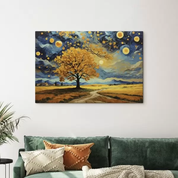Картина Пейзаж з деревом і яскравим зоряним небом Арт. s47255