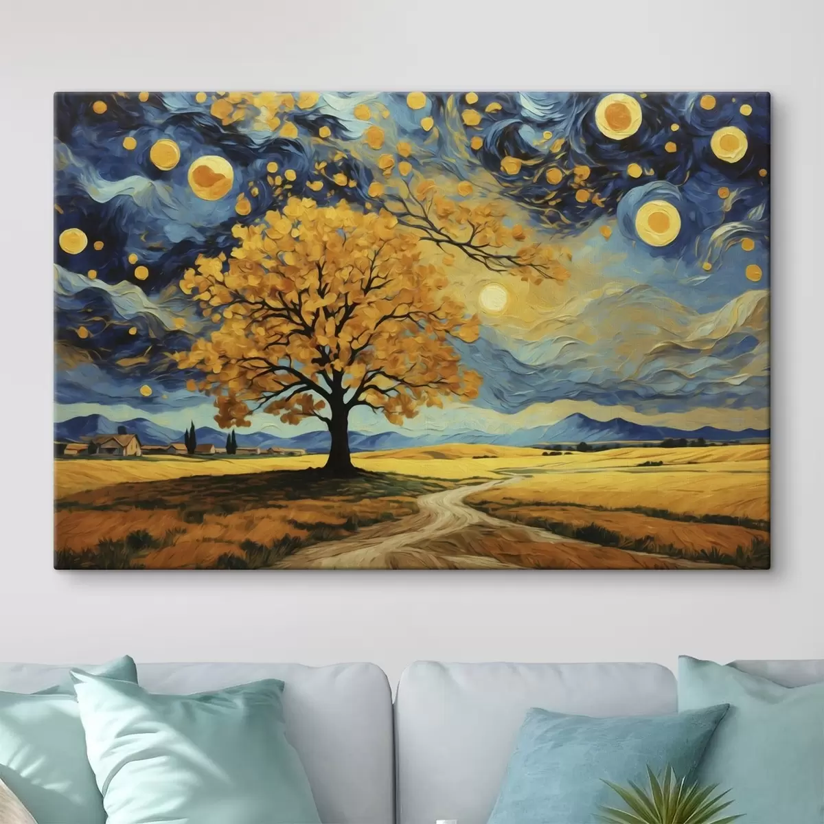 Ми не рекомендуємо розміщувати картину безпосередньо під сонячними променями або у вологому приміщенні. Це може призвести до потьмяніння яскравості зображення з часом.