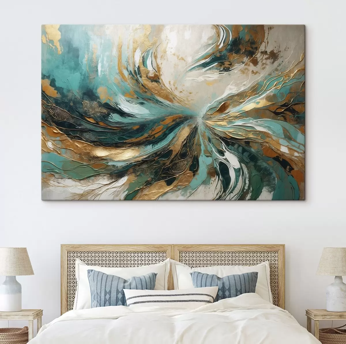 Картина Бірюзова абстракція з лініями Арт. s47258