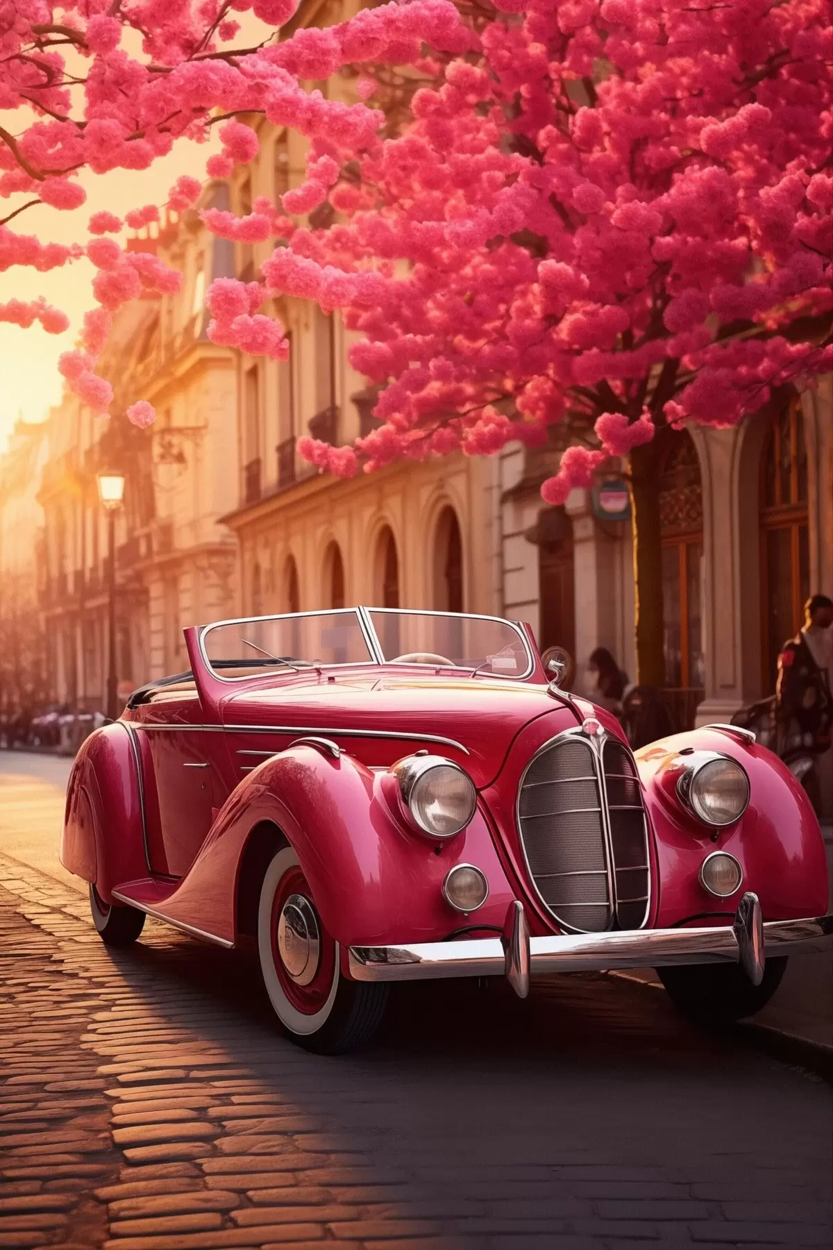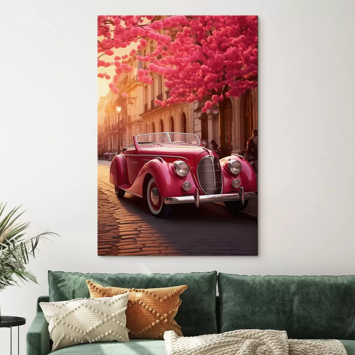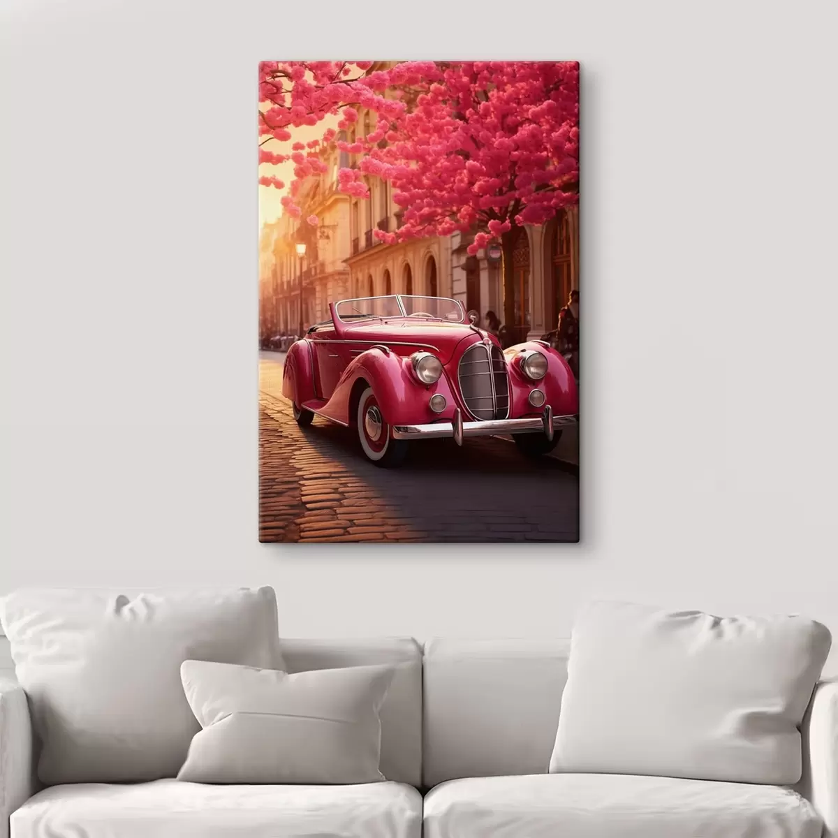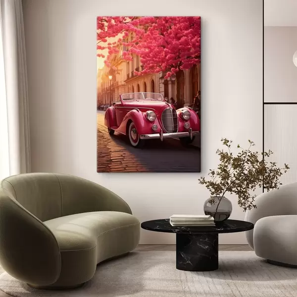 Картина Рожевий автомобіль під квітучими деревами Арт. s47295