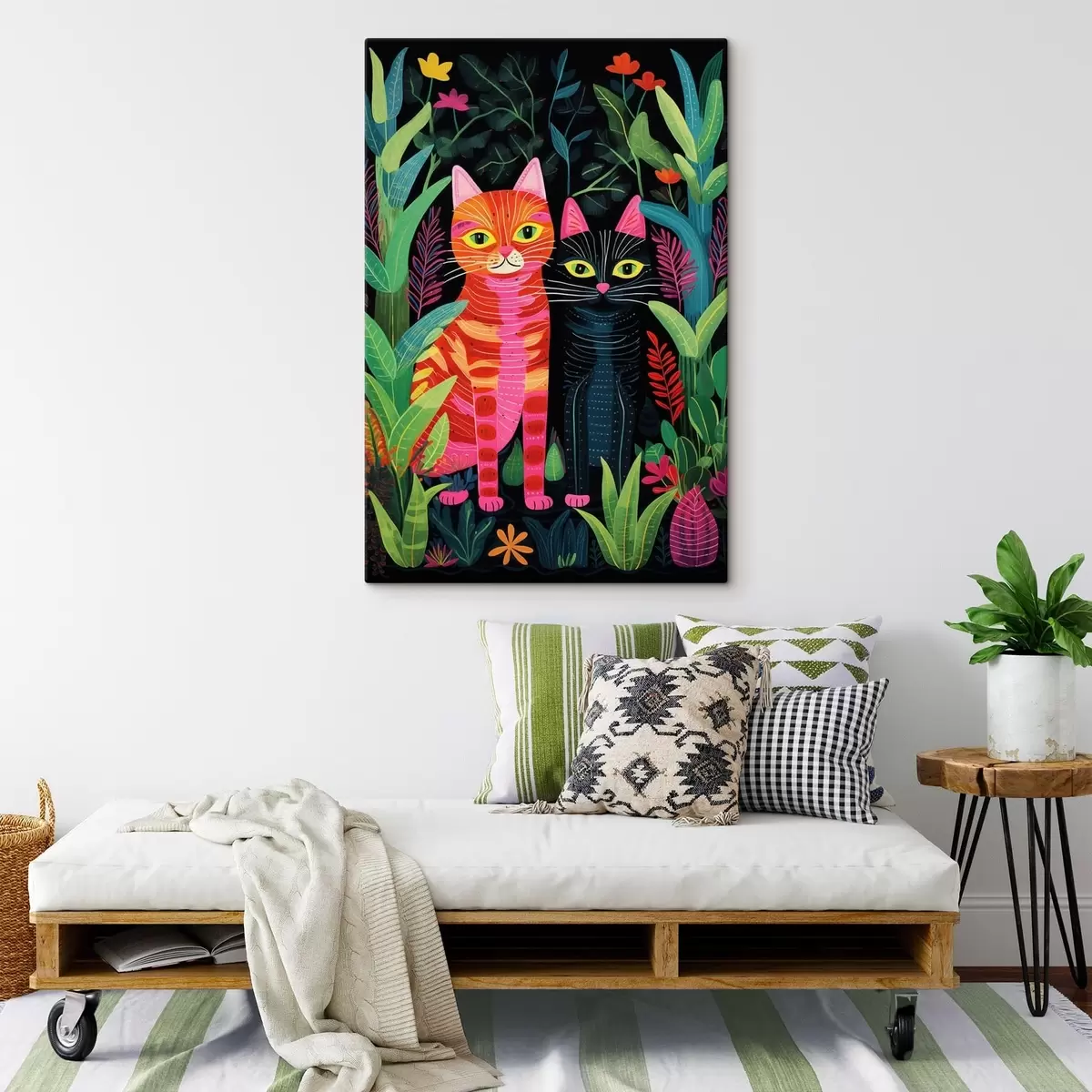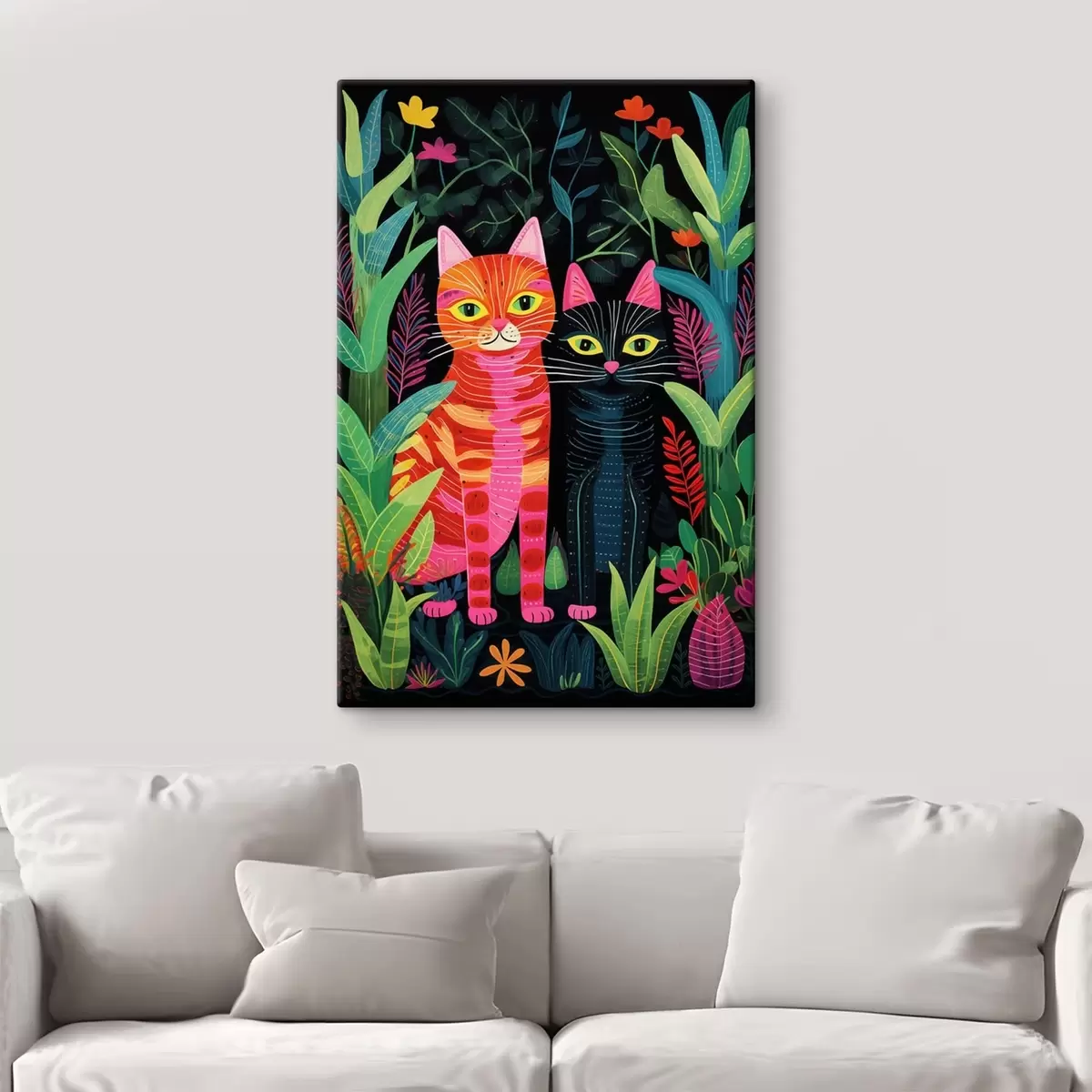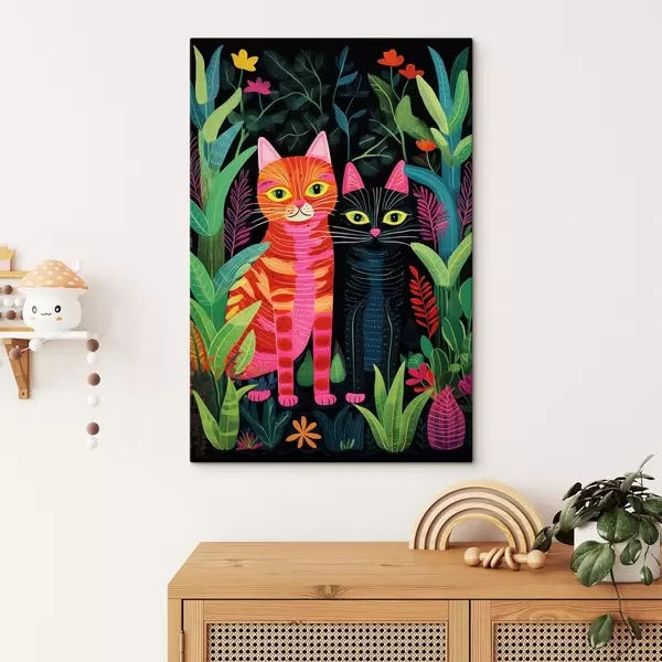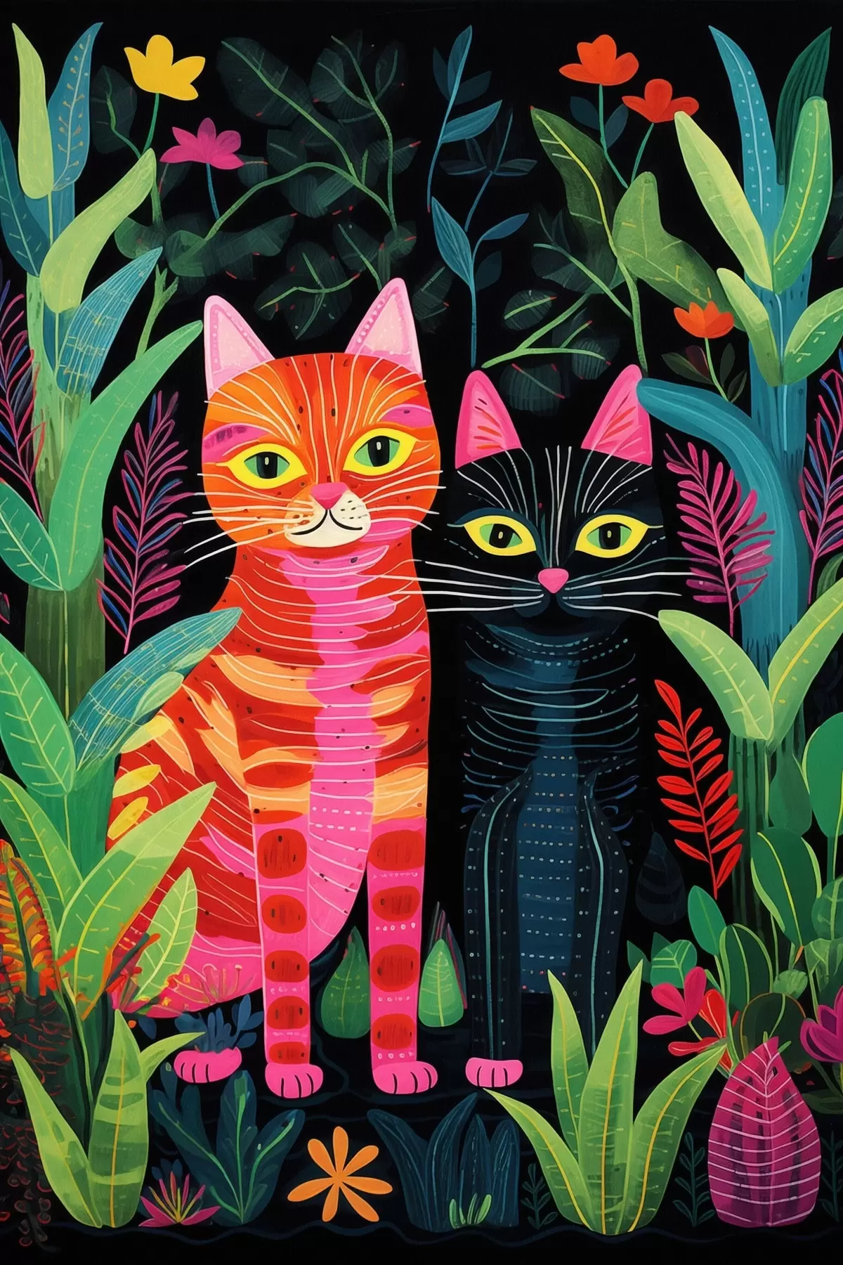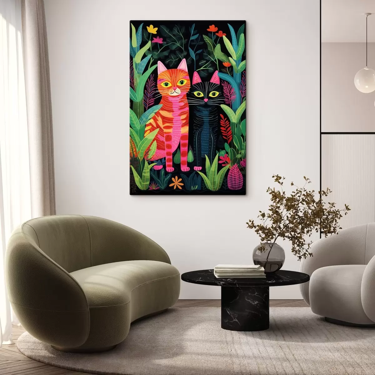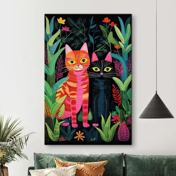 Картина Дві стилізовані кішки серед яскравих рослин Арт. s47298