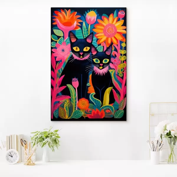 Картина Дві чорні кішки серед яскравих квітів Арт. s47299